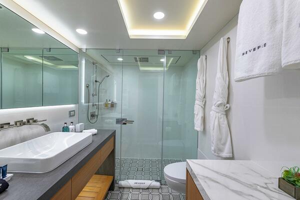 From the spacious living areas and the sprawling decks to being equipped with state-of-the-art technology and engineering, REVERIE is a seamless blend of luxury and efficiency. Expansive deck space is plentiful on all three levels, providing several functional places for both entertainment and relaxation. REVERIE’s accommodations are designed to provide an intimate and serene retreat for every guest.