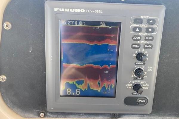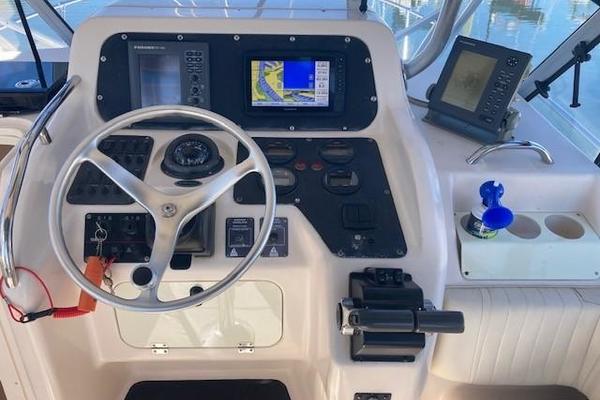 Equipped with full helmdeck enclosure, radar, GPS chartplotter, fishfinder, VHF radio, Fusion stereo, electric anchor windlass and outriggers.