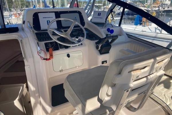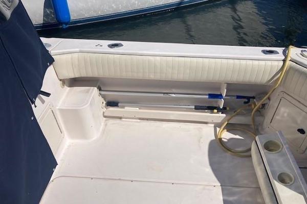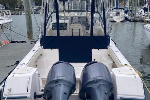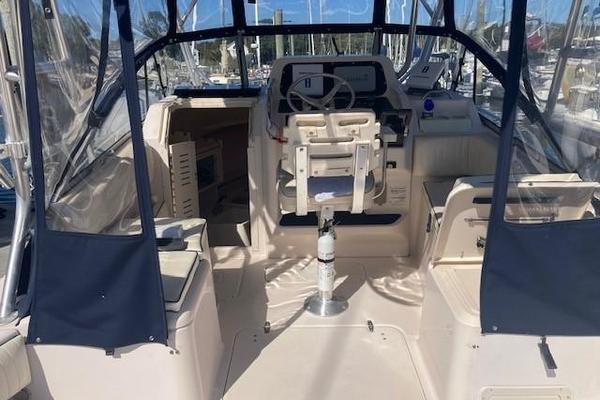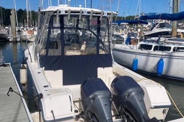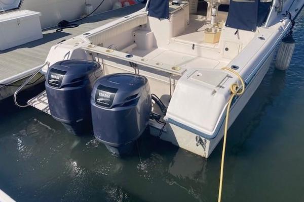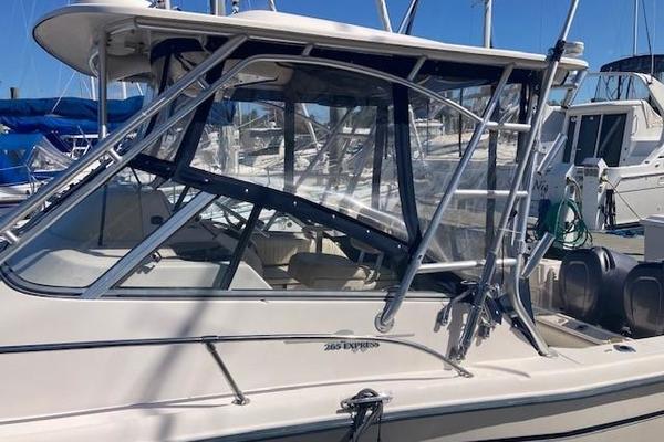 A popular model, the widebody Grady 265 Express dwarfs most express boats her size and comes loaded with features. Hardtop, outriggers, windlass, and an enclosed head. Powered by T-200hp 2 stroke Yamahas. No Trailer.