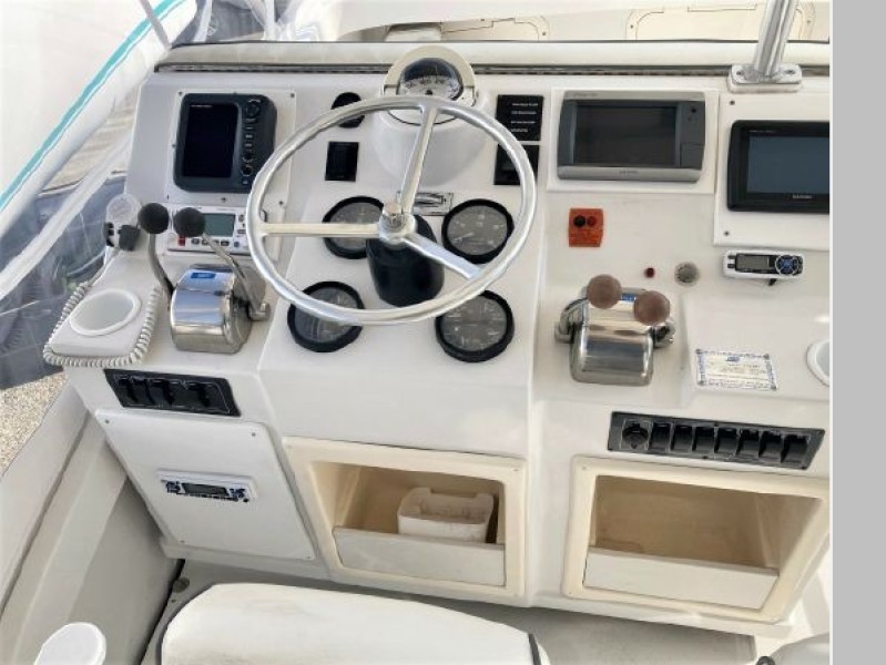 A lot of boat for her size this 34 Luhrs is a good-looking Convertible with reliable Yanmar diesel power. It's a one-owner Connecticut boat that's been very well maintained by her conscientious owners. Equipped with a half tower, transom door and a large cockpit area w/ molded steps up to the flybridge. Recent FB canvas and electronics. Attractive interior with a single stateroom, galley up layout. The salon settee pulls out to sleep 2 plus a child in the upper bunk. This boat shows well!