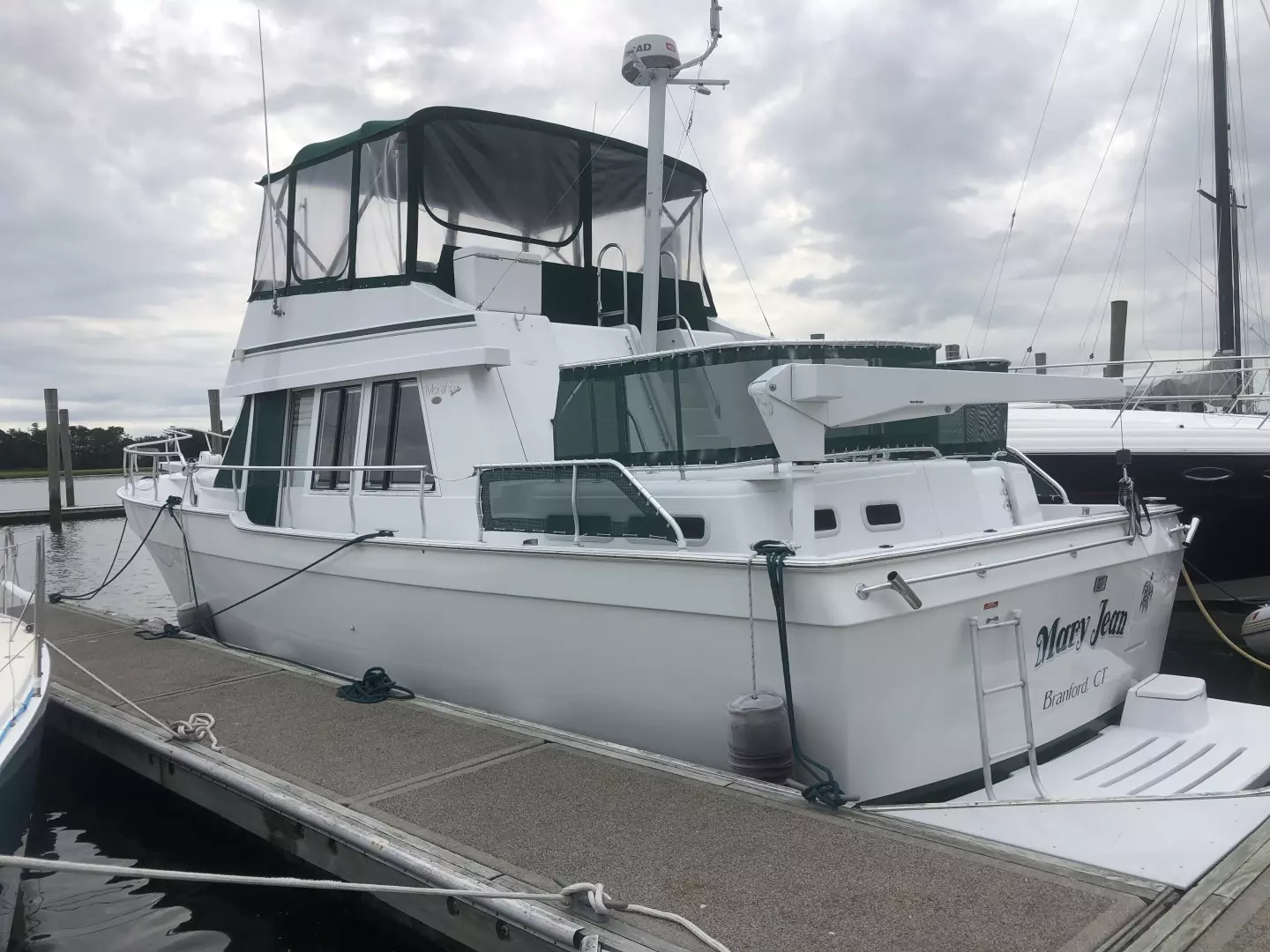 Mary Jean a Mainship 430 fast trawler is a great cruising yacht with tradional styling built on a solid fiberglass semi-displacemtn hull. Powered by a pair of 3116 turbo Caterpillar engines makes this Mainship 430 a great loop boat. Well maintained by its owners she won't last long on the market