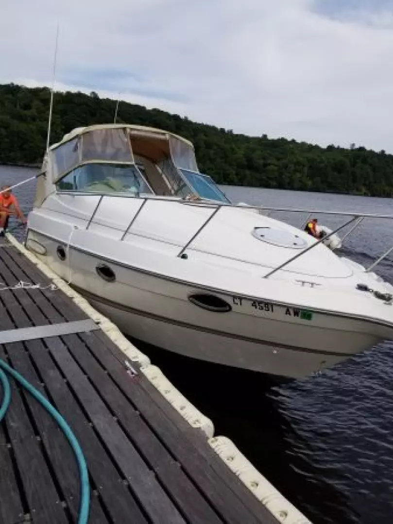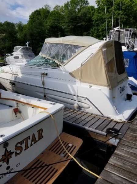 "MCLOVIN" has been kept in fresh water for the last couple years. All maintenance has been completed by the local marina. "MCLOVIN" is in good condition for her age. Powered by Twin 4.3L Mercruiser engines that are raw water cooled with Bravo outdrives and only 450hrs. Spacious cabin with heat/AC. "MCLOVIN" is MUST-SEE Maxum with the capabilities to cruise the sound for a long weekend or just moor up at the dock on Friday night.