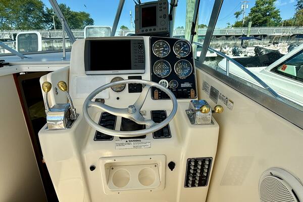 Well-maintained and ready for the next adventure, this 2000 Pursuit 3000 Express is the blend of offshore capability, cruising comfort, and classic Pursuit style. She's equipped with twin Mercruiser 5.7L Inboard engines with straight shafts, which makes for simple and easy maneuverable in tight docking situations.
