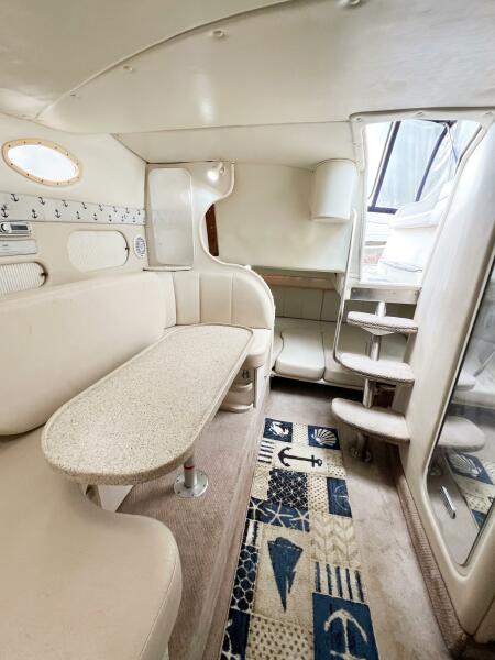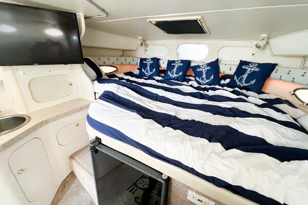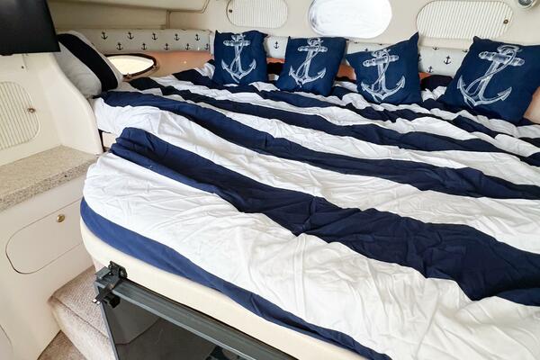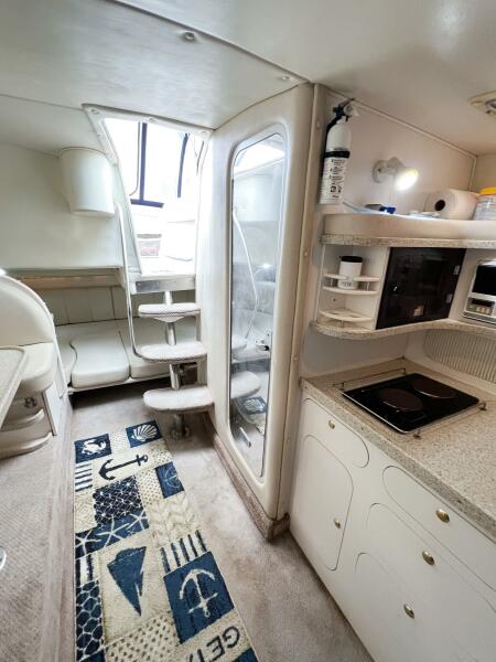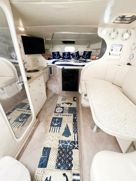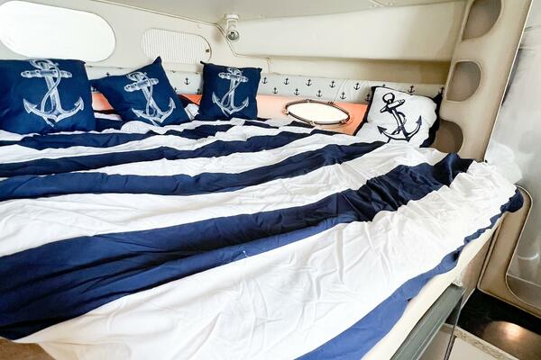SHIPS & GIGGLES is a well-maintained 2000 Rinker Fiesta Vee 330 offering a spacious interior, family-friendly layout, and repowered in 2008 with twin MerCruiser 350 MAG engines with counter-rotating Bravo III propellers. With her 7.5kW Kohler generator, air conditioning, enclosed canvas, and full-size amenities, she’s an ideal coastal cruiser for weekends away or comfortable ICW adventures.