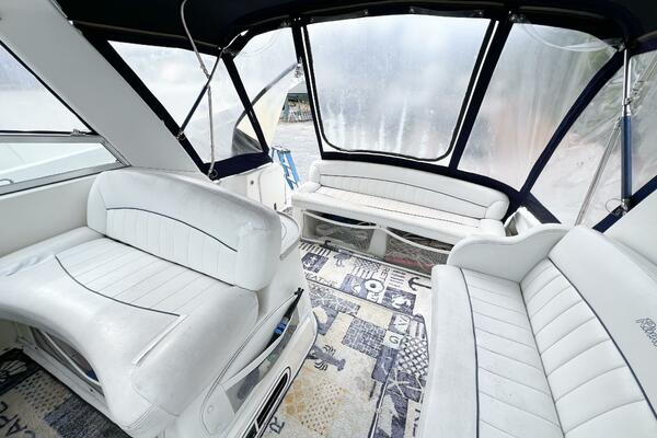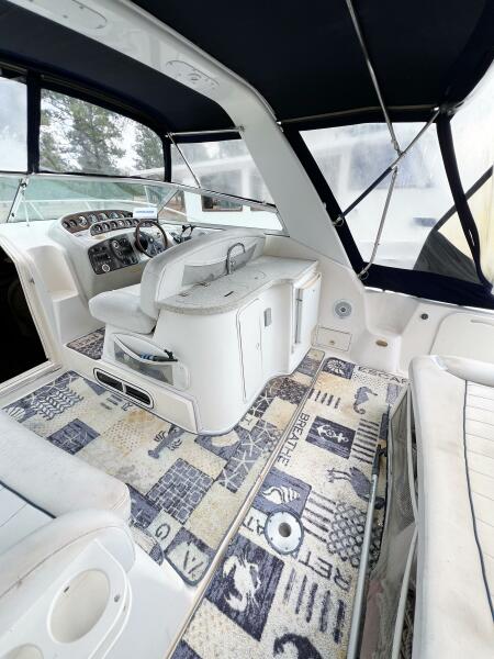 SHIPS & GIGGLES is a well-maintained 2000 Rinker Fiesta Vee 330 offering a spacious interior, family-friendly layout, and the power of twin MerCruiser 350 MAG engines with counter-rotating Bravo III propellers. With her 7.5kW Kohler generator, air conditioning, enclosed canvas. Perfect weekender!