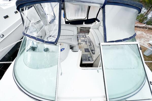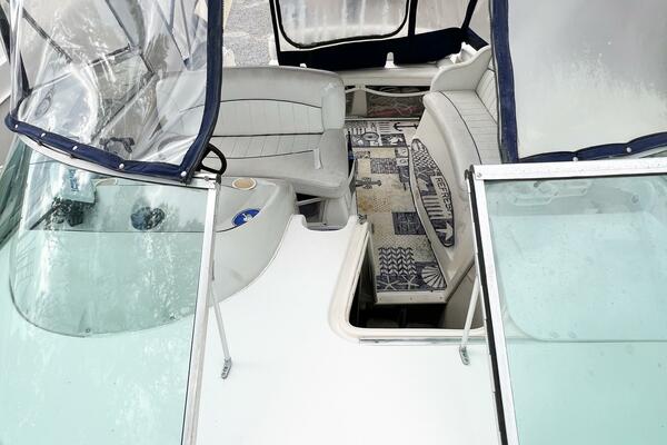 - Walk-through windshield to bow
