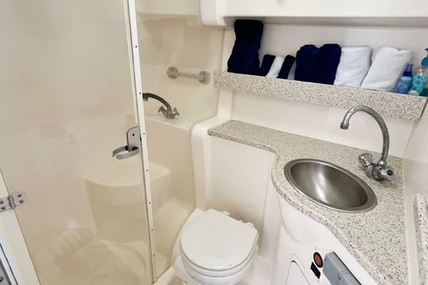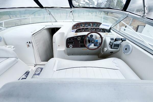 This Rinker Fiesta Vee 330 is a strong value in today’s express cruiser market. Loaded with desirable features—including generator, AC, enclosed head with separate shower, full canvas, and versatile sleeping accommodations—SHIPS & GIGGLES is ideal for family cruising, long weekends, or island-hopping adventures.