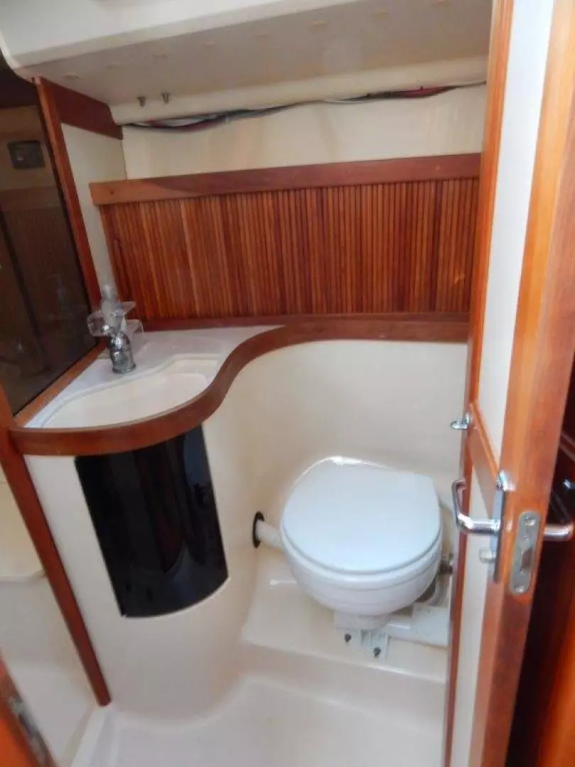 - Aft head with separate stall shower.