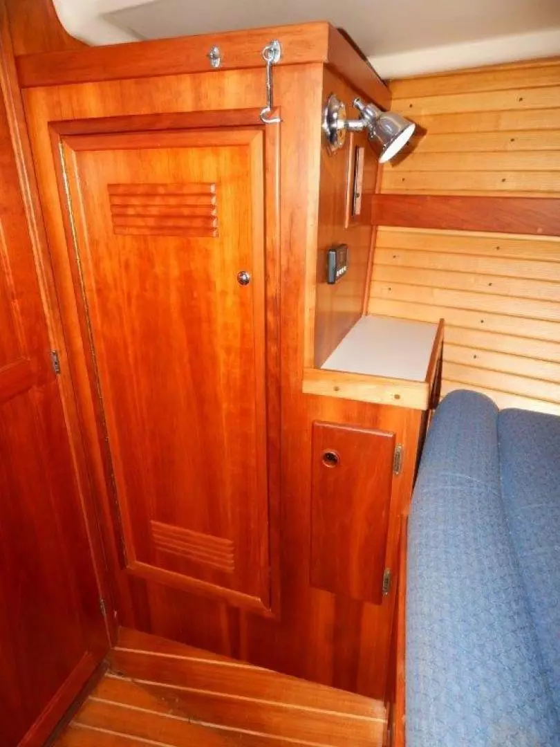 - Varnished interior cherry finish with teak & holly cabin sole. Two coats sealer only on the sole.