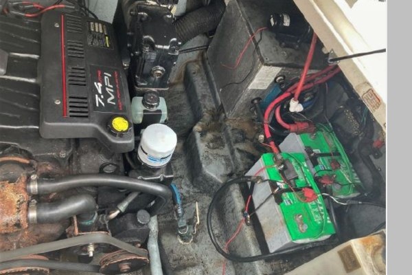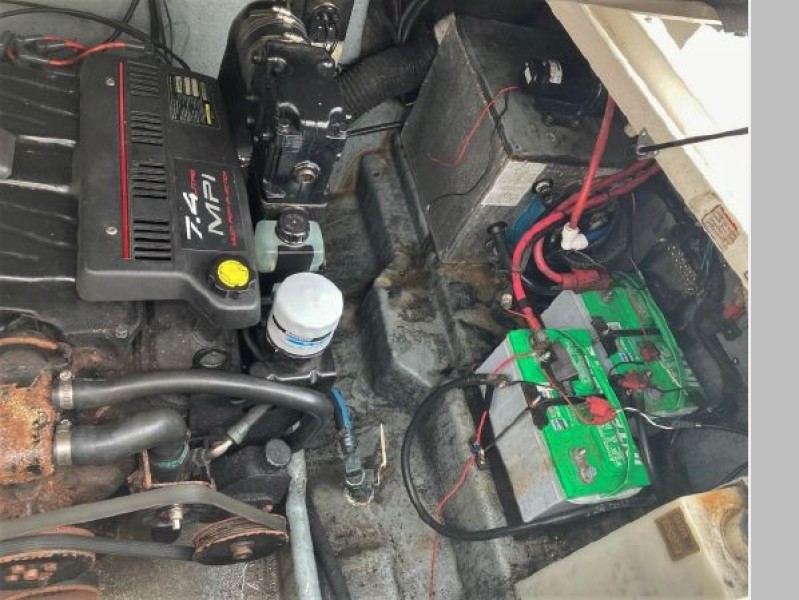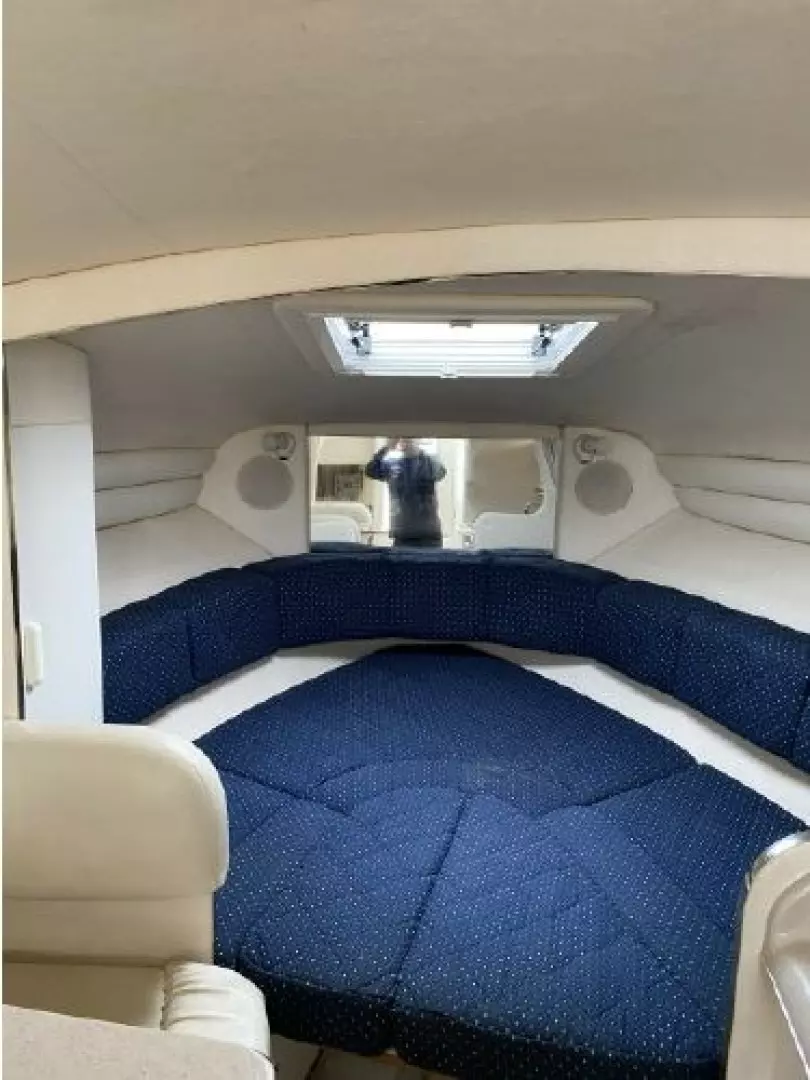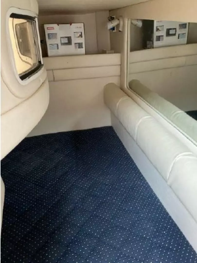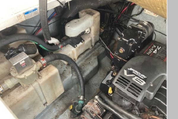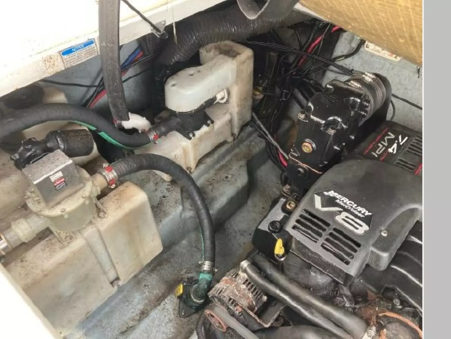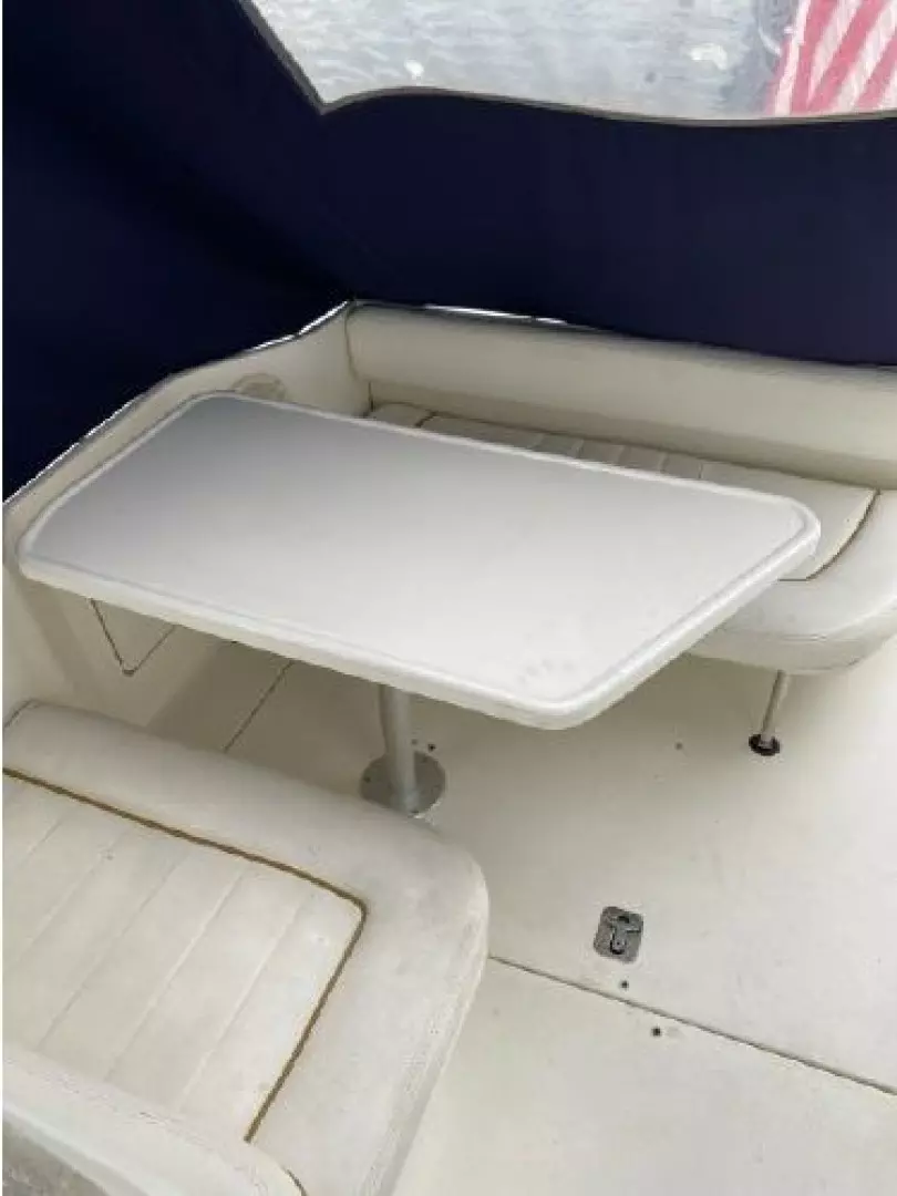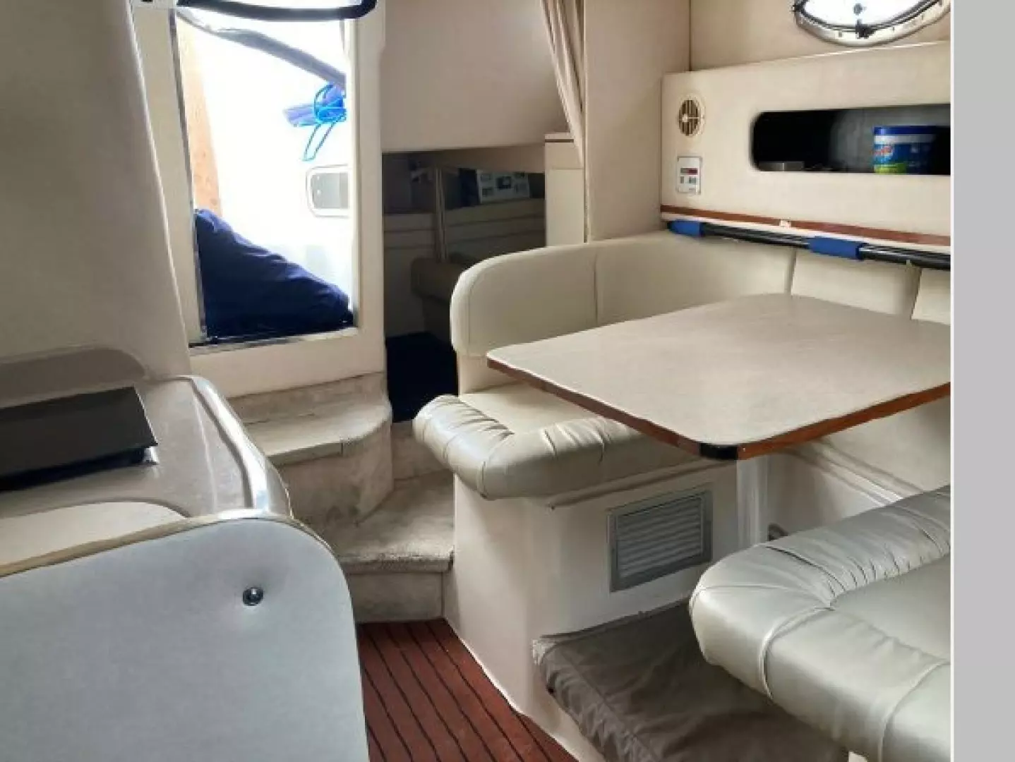 Over the years Sea Ray has had many versions of the 270 Sundancer however the 1998-2001 models had a wider (non trailerable) 9' 2" beam. The added width makes for a roomier boat so the interior is quite spacious for a 27 footer with accommodations for up to six. There's a V-berth forward, a double-berth in the mid cabin, a convertible dinette, compact galley and an enclosed head. There's lots of outside seating and a handy walk-thru windshield. Powered with a 310hp Mercruiser 7.4 liter engine (475 hrs) with a Bravo III stern drive.