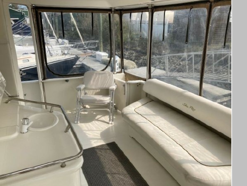 - Fiberglass steps lead from aft deck up to the roomy flybridge