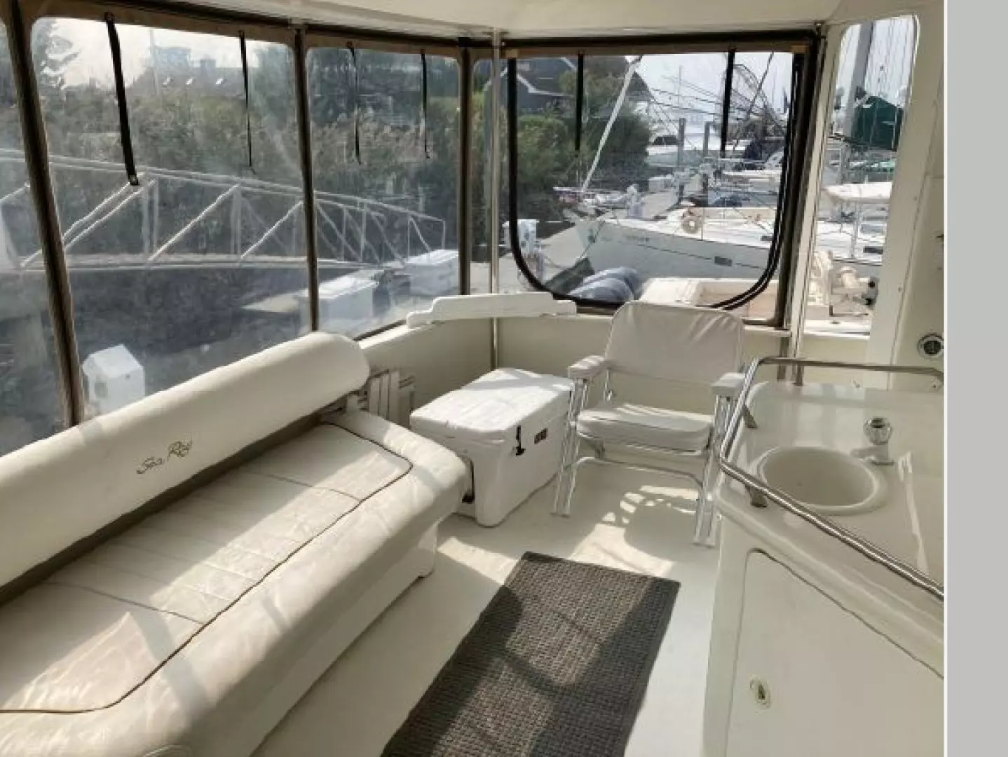 - Aft deck has a hardtop with full enclosure, wetbar, hot/cold shower and a fresh water washdown
