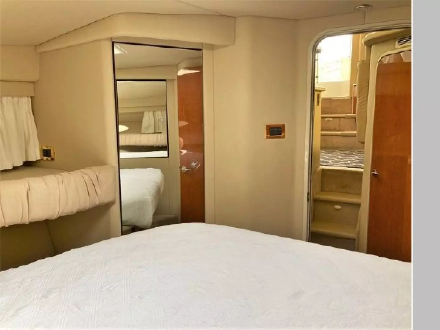 - Opposite the galley is an additional small stateroom with single berth