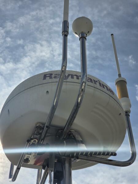 - Radar pole mounted aft with outboard engine lift. Radar platform is adjustable to keep unit horizontal