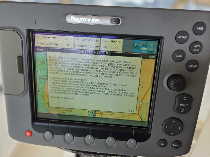 - Raymarine 48 mile radar interfaced with GPS and Autohelm