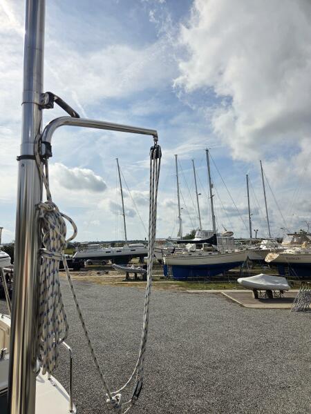 - Custom lower dorade guard to carry dinghy on foredeck with staysail pennant to clear dinghy