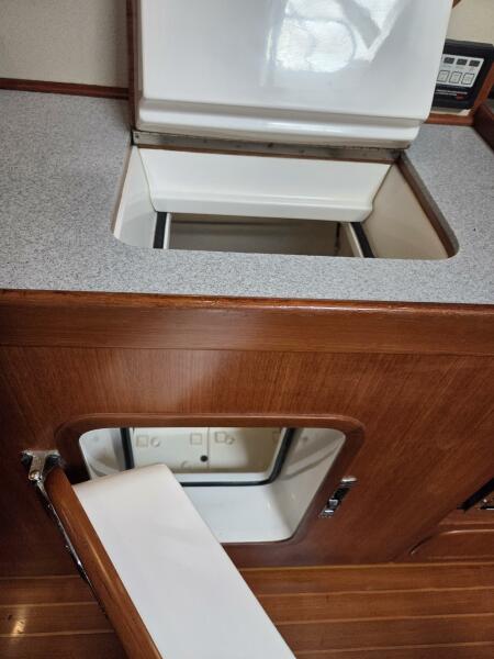 The Taswell 44 hull is constructed of hand laid GRP with vinylester resin for superior moisture resistance and both mat and roving fabrics. She's a solid and stiff boat with numerous longitudinal stringers. The superior hull to deck joint is both mechanically and chemically bonded with 5200 and 3/8" stainless steel bolts on 8" centers. The deck has a sandwich construction with 1/2" end grain balsa core. In areas of high stress and heavy loads solid construction and backing plates have been utilized.