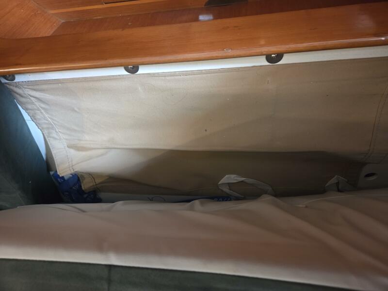 - Two varnished teak seats for stern pulpit, one seat for bow pulpit
