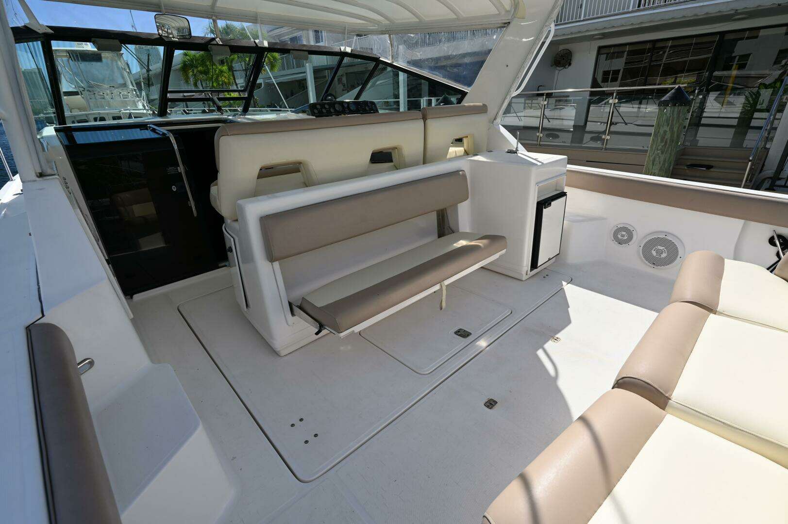 The cockpit on the Tiara 3500 Express is designed for both relaxation and functionality. A wide beam provides plenty of space for seating and entertaining.
