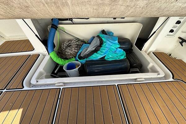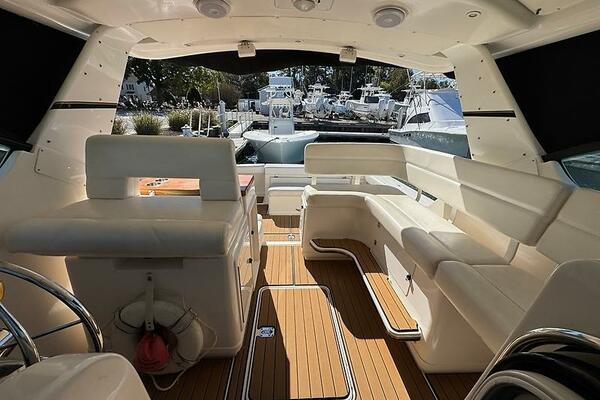 The Tiara 3500 Open’s deck layout is designed for both leisure and practicality. A large cockpit accommodates several guests comfortably, with plenty of storage, transom door, and swim platform.