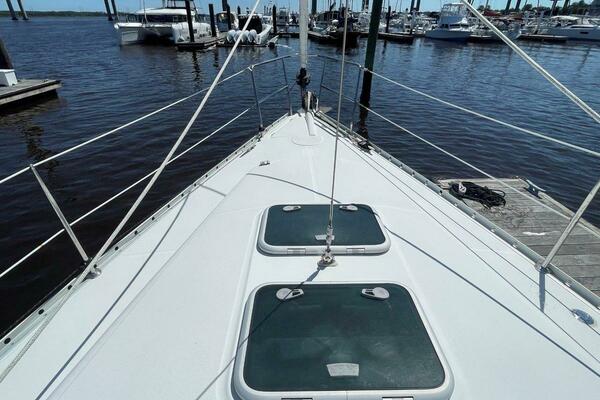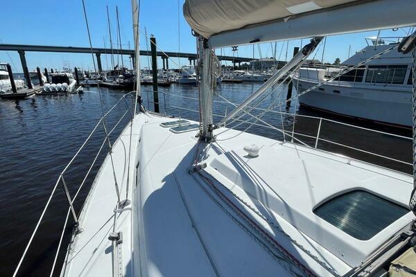 • Displacement & Ballast: Solidly built at roughly 13,300–13,850 lb with a 4,156 lb ballast bulb keel, offering stiffness and comfortable motion at sea.