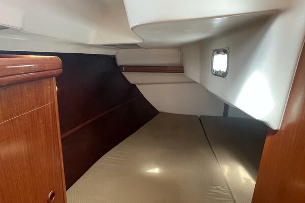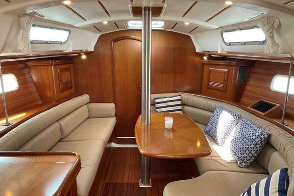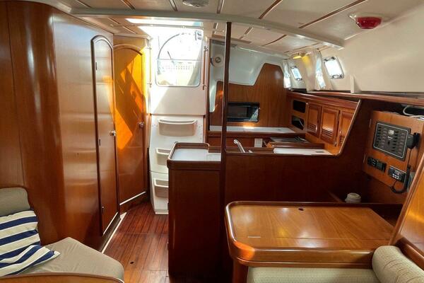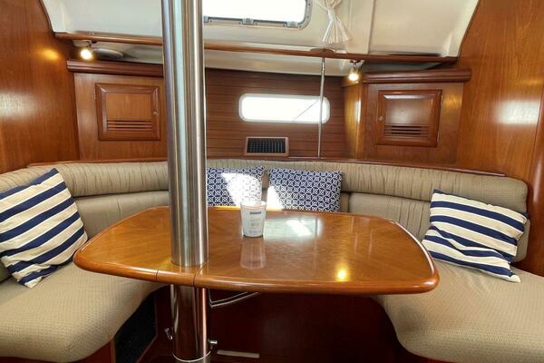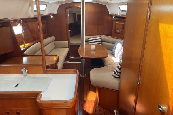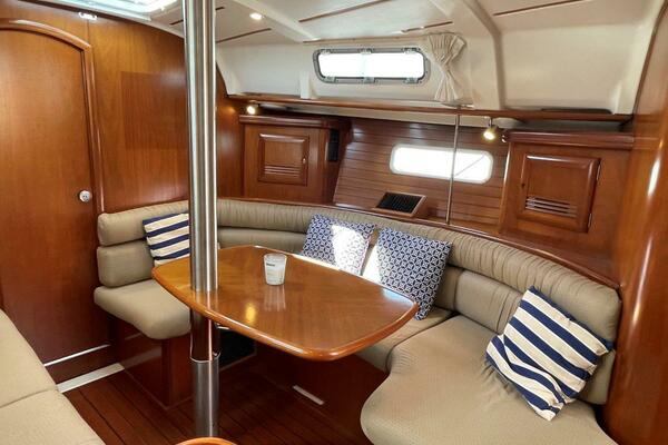 The two-cabin layout of the Beneteau 361 combines thoughtful design with cruising comfort. The interior features high-quality woodwork and generous (6'4”) headroom. The space features two spacious cabins, a large head, a U-shaped galley, versatile dining and sleeping areas, and ample ventilation.