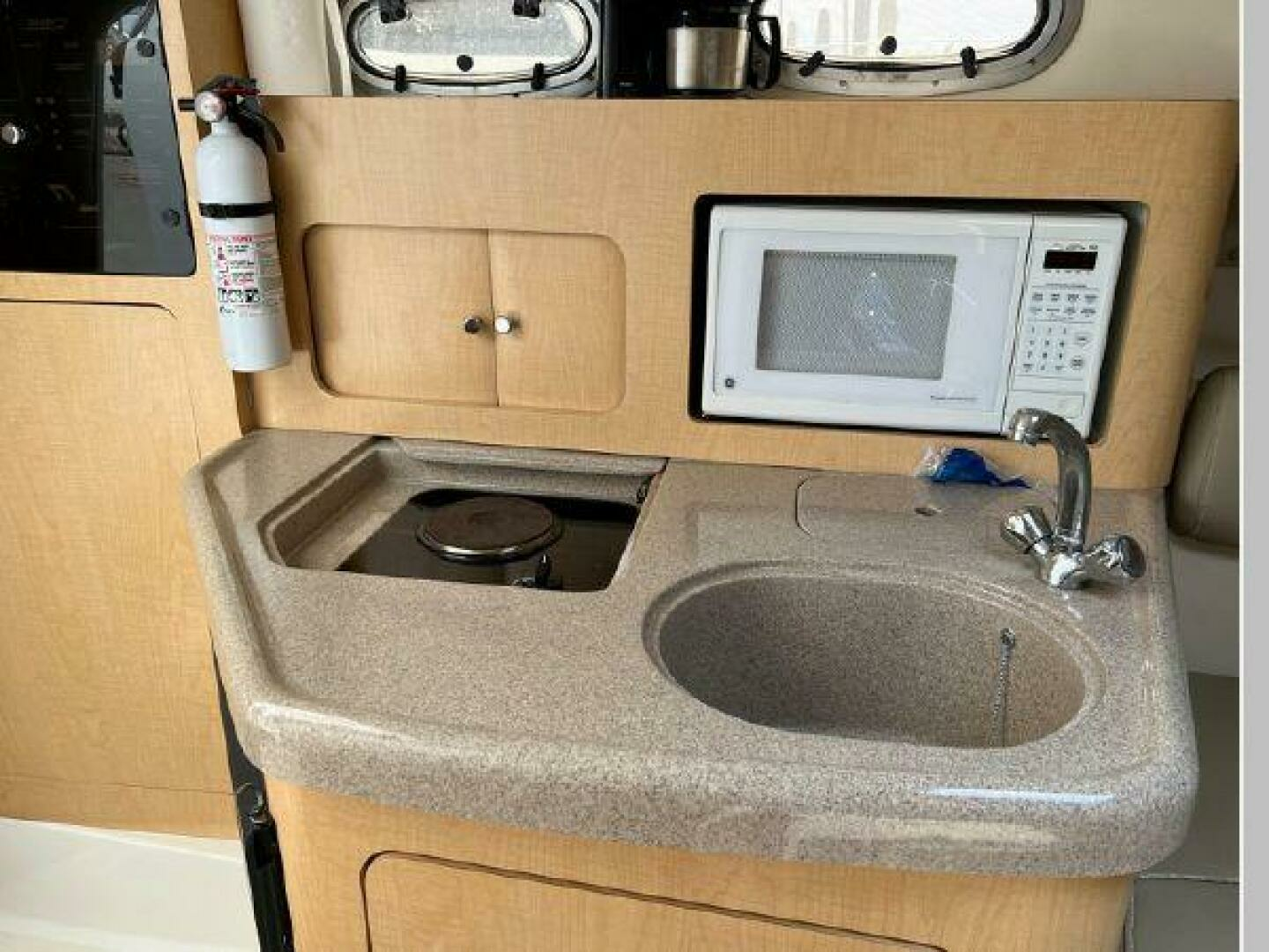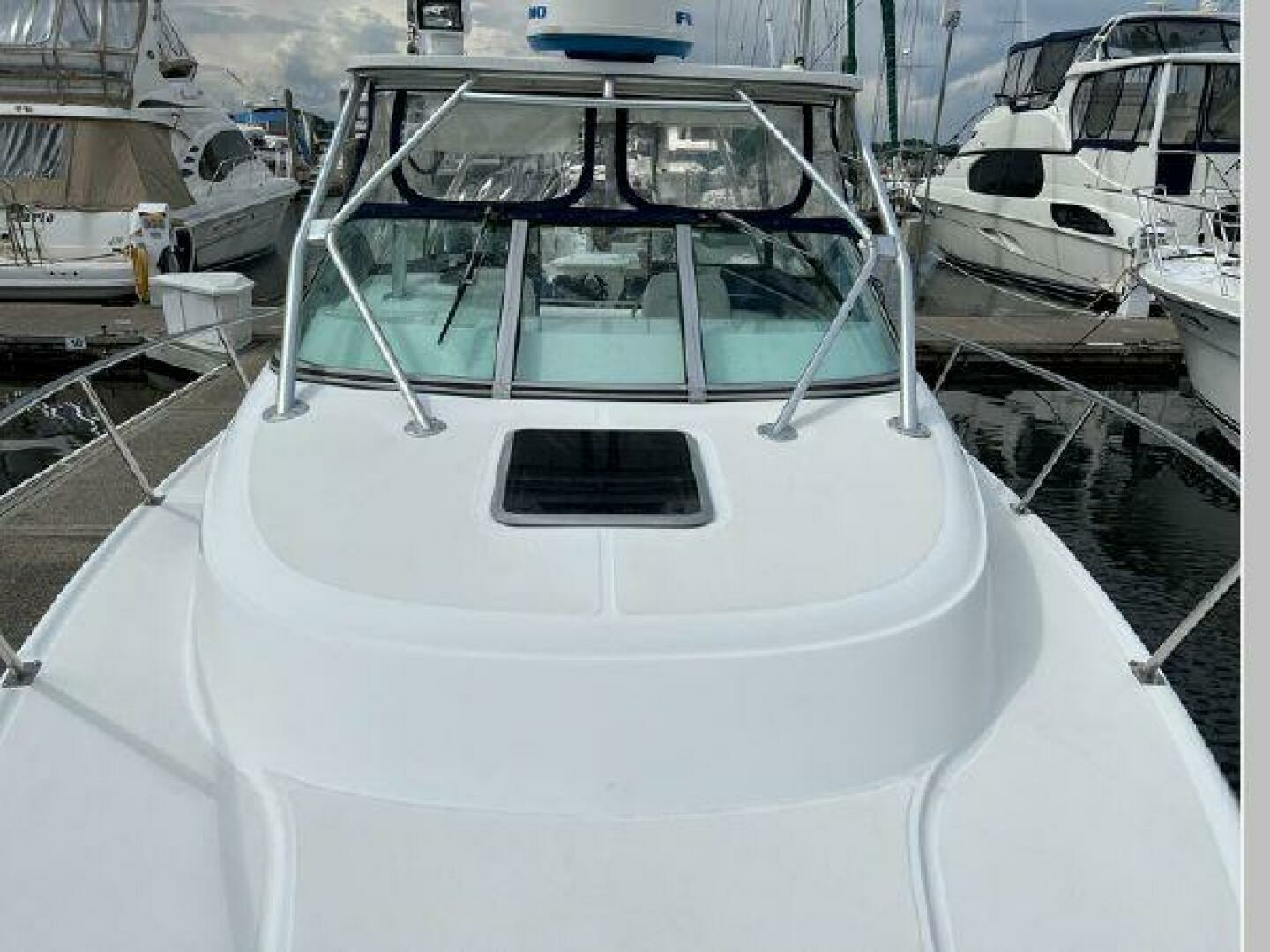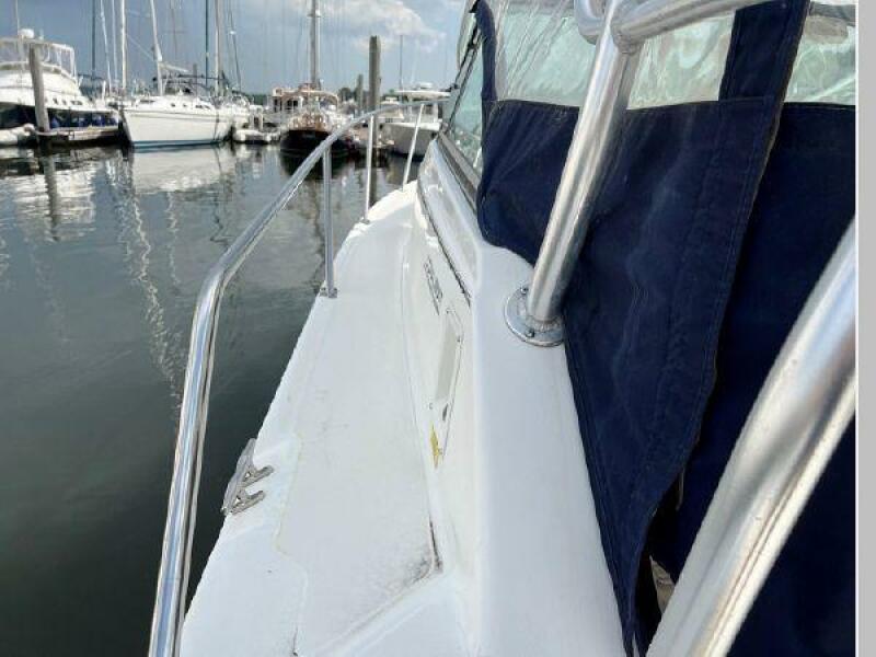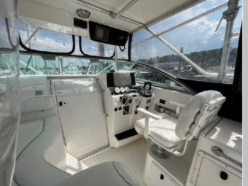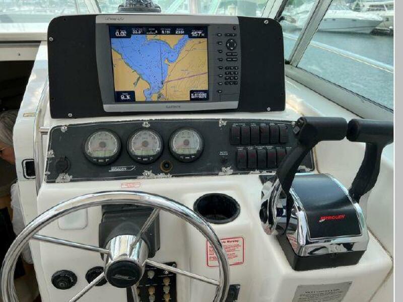 This boat spent 10 years in storage before the current owner purchased and her condition reflects light use. Since she has been maintained by Merc certified shop. Interior is clean , cushions are in great shape, new throttle cables recently installed and all systems and electronics are in working order and ready to be used.