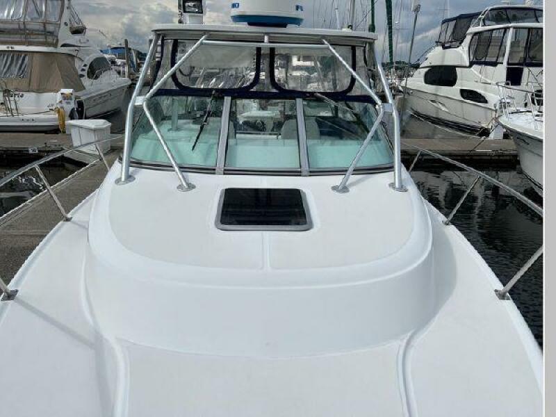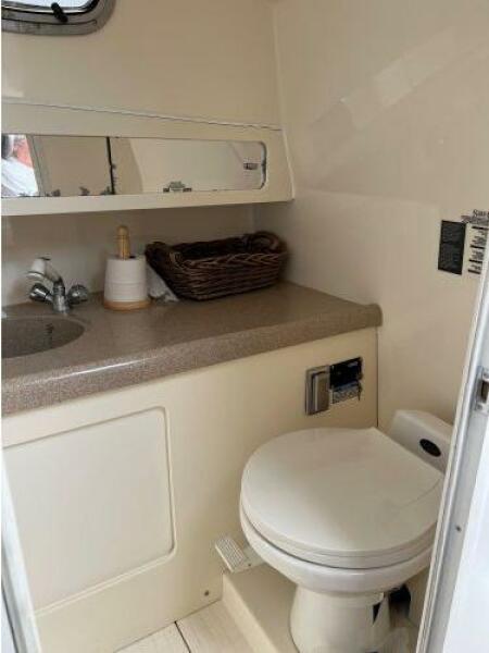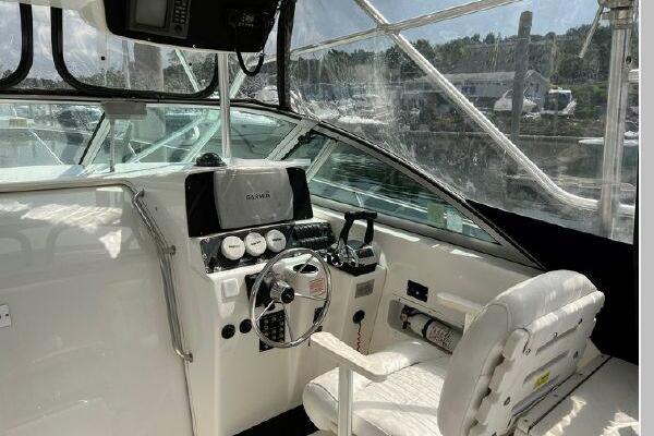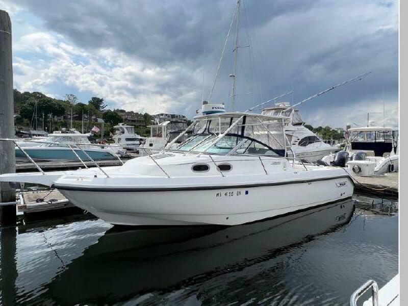 The deep-V hull entry provides a stable, dry ride in chop while the large fuel capacity and on board amenities allows for all-day cruising. Plenty of interior cabin space makes spending the night comfortable, and the raised-deck cabin affords spacious interiors with ample headroom. Unibond, all fiberglass construction makes this boat virtually unsinkable.