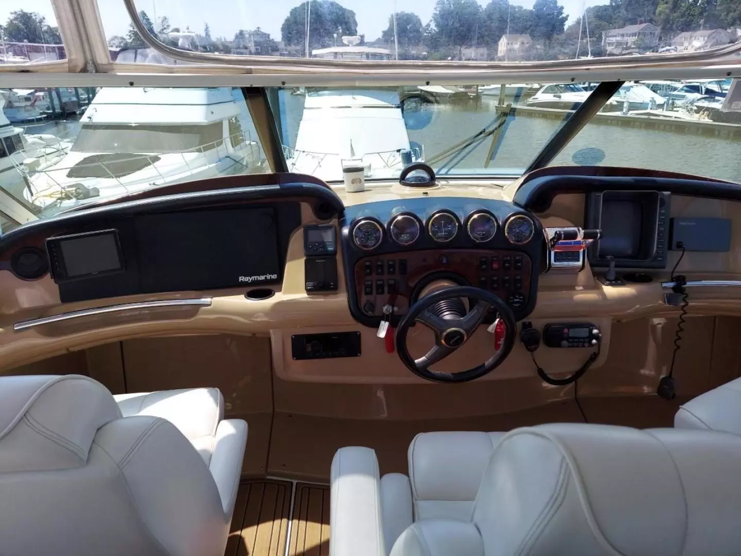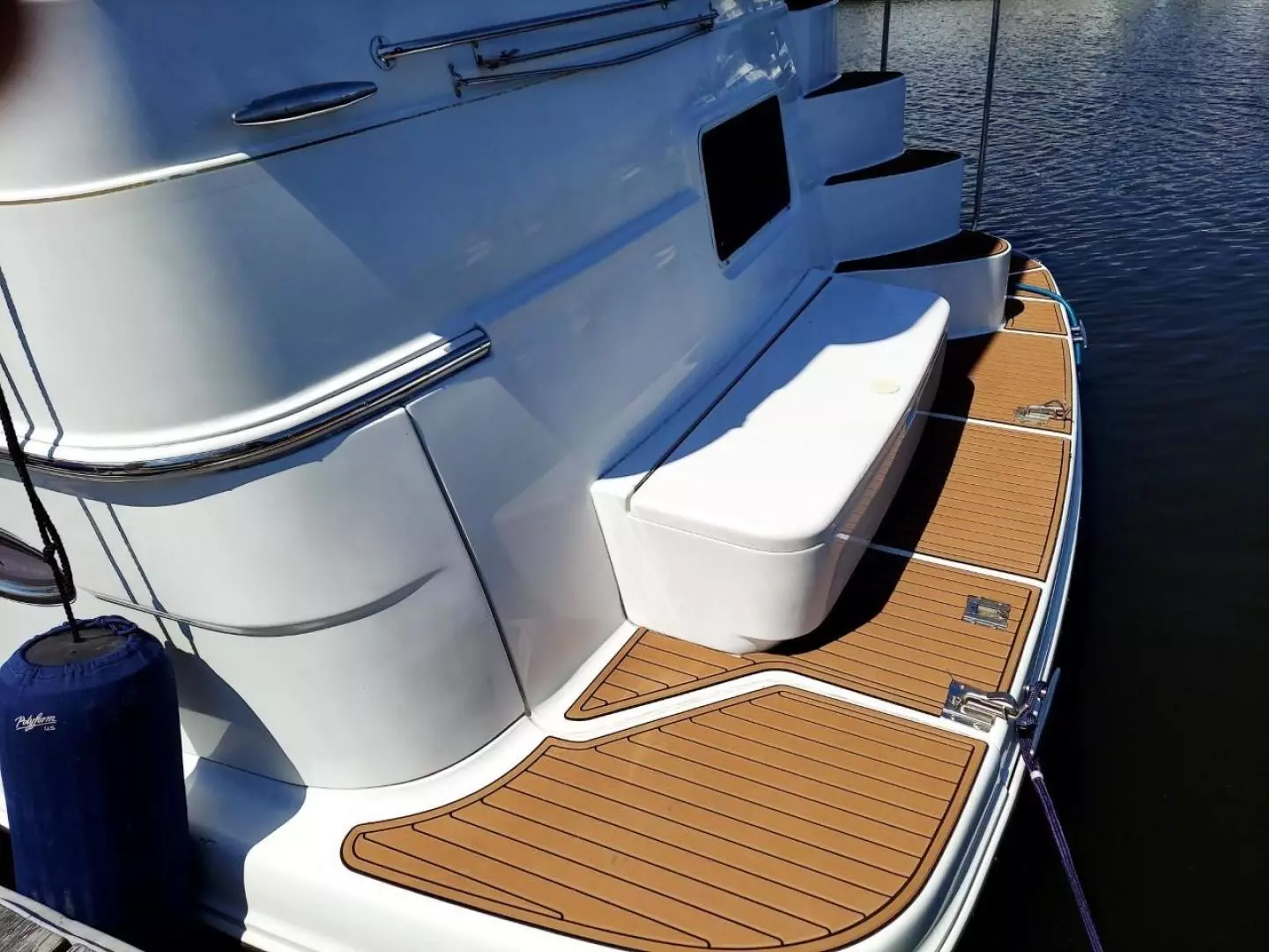 Pride in Ownership! If you're looking for a yacht that has been upgraded and mechanically perfect, look no further. The seller has spent $50,000 on upgrades and maintenance in the last year. All new hardwood floors in the main salon, new carpets in the master salon and guest salon, and outdoor Seadeck flooring installed on the swim platform, aft deck, and flybridge deck. New 17-inch Raymarine navigation, autopilot, as well as bridge and aft Bluetooth stereo and speakers. Flybridge easily accommodates 8 adults and is perfect for sunset views and entertaining. This boat is equipped with the larger and preferred 8.2 Cummins diesels option with only 590 hours. She runs strong and delivers superb mileage. Cruise speed 20 mph with a top speed of 27 mph. She comes with a rare hard-top flybridge as well as a bow thruster that makes docking easy.