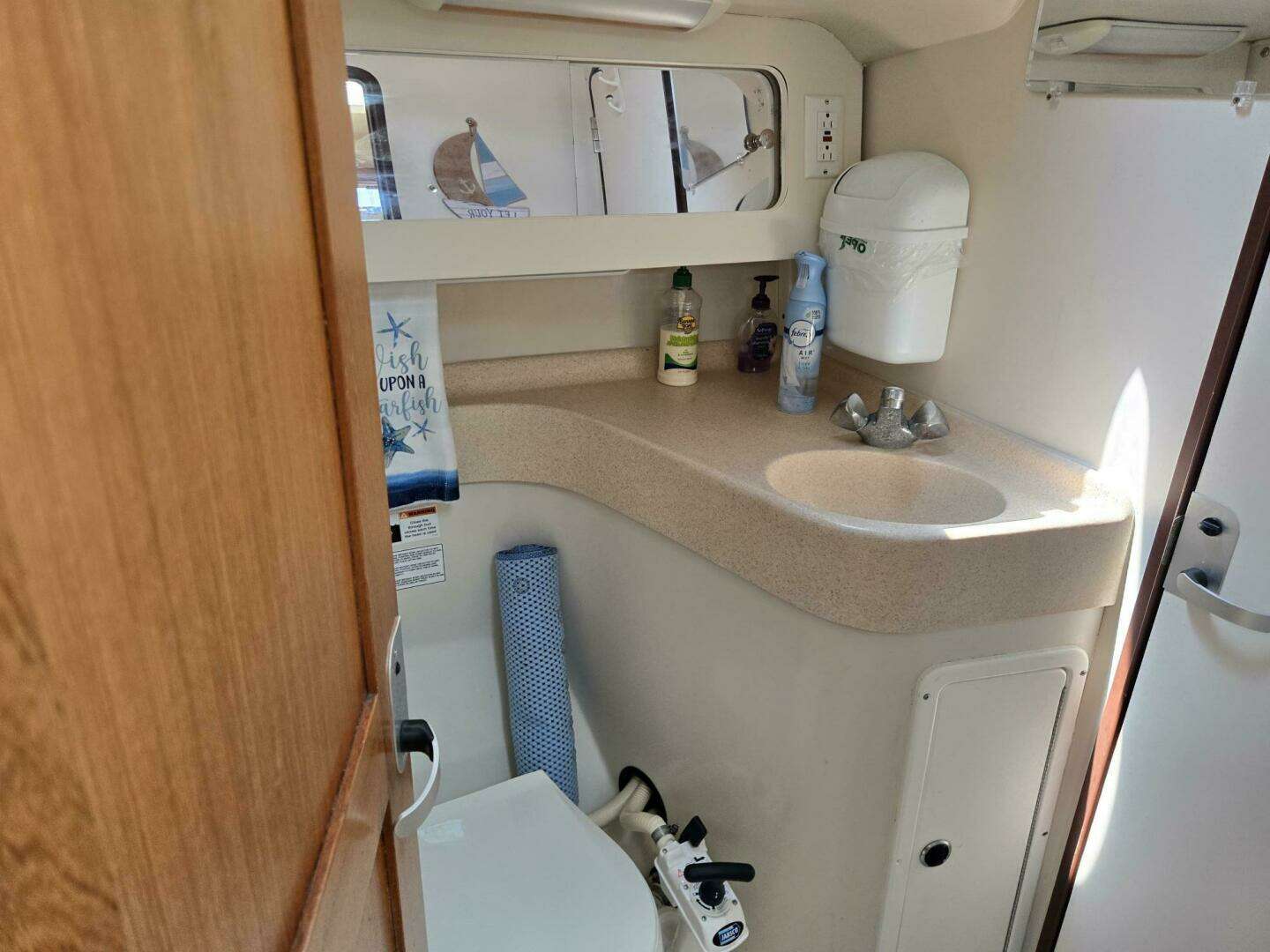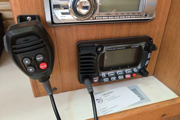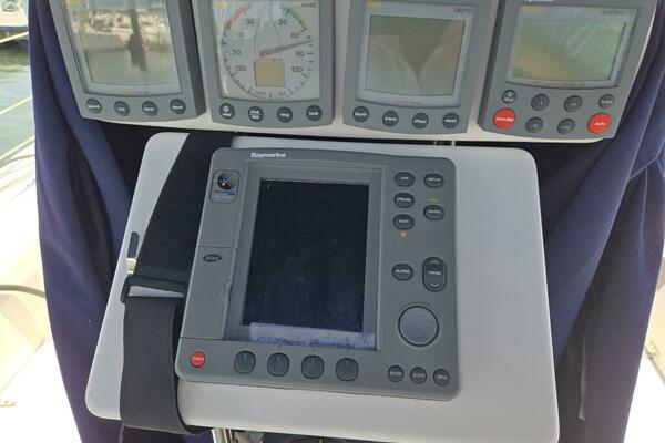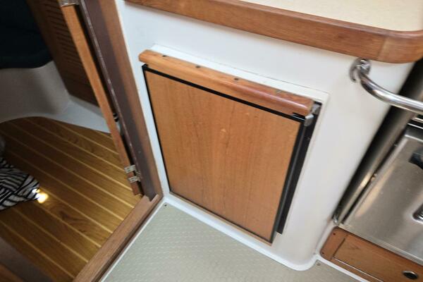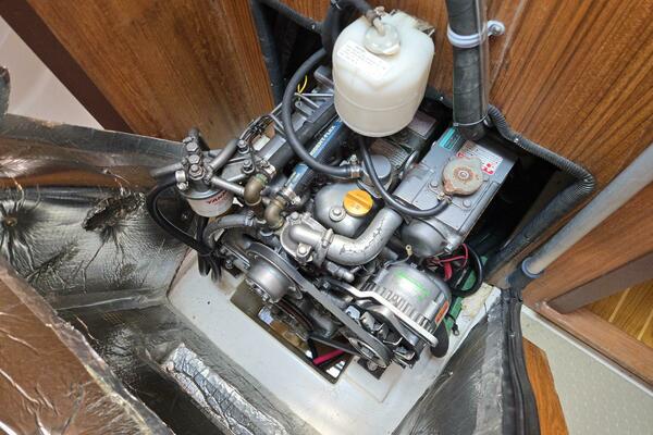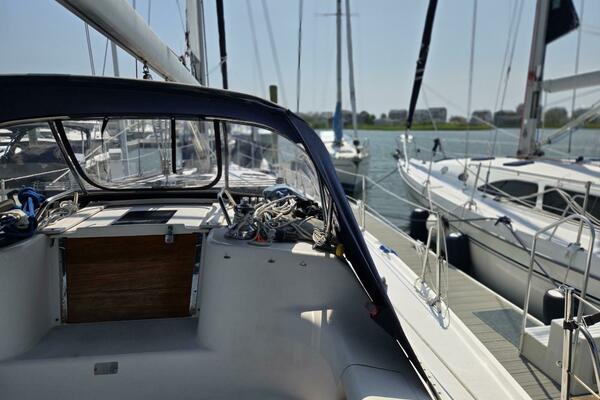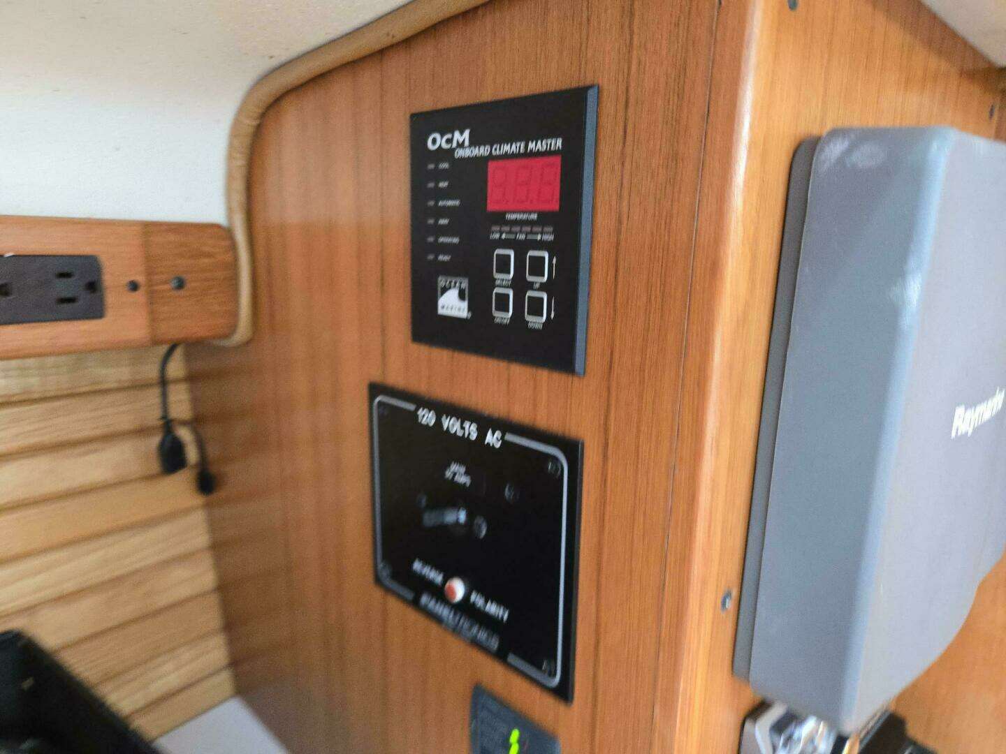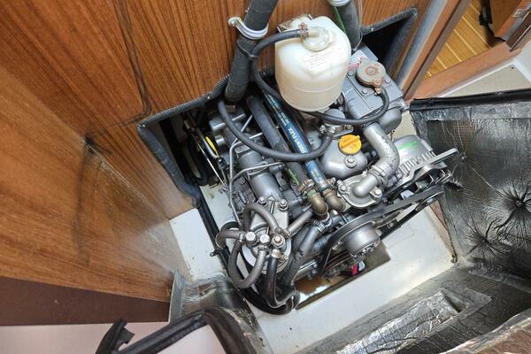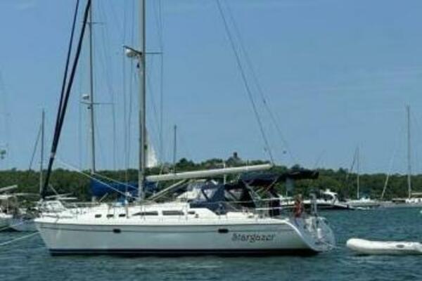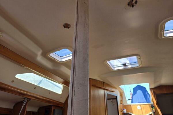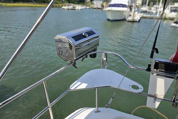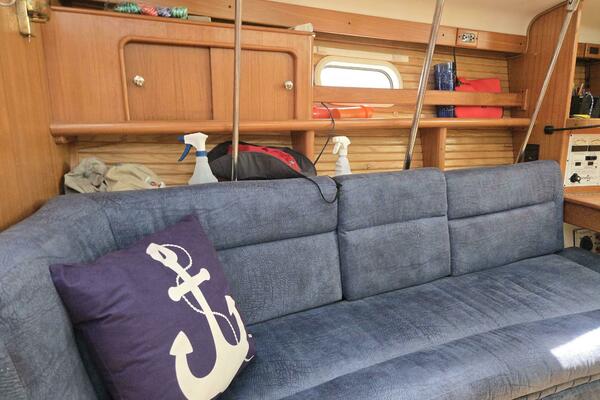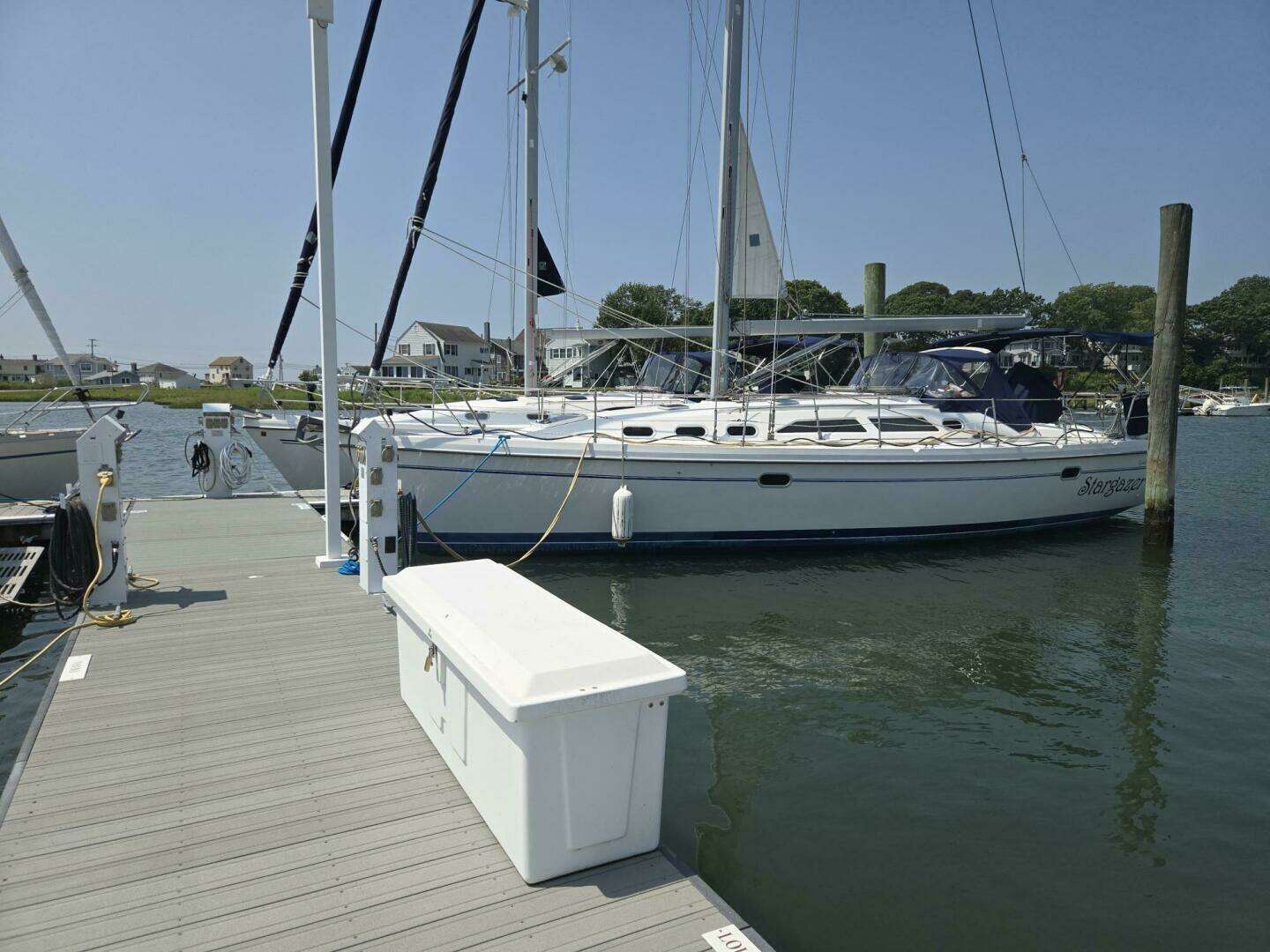 Forward you have a V-berth with a sink with vanity to port and a hanging locker to starboard. Aft to starboard you have a long settee where the center cushion folds down to make a table for cocktails. Aft again to starboard is the nav station and the enclosed head with separate stall shower. Aft to port is the dinette area with table that converts to a double bed. Aft again to port is the spacious galley area. Aft again to port is the master stateroom with a center line queen bed, seats port & starboard and access to the head. Up the steps to the cockpit area with U-shaped seating, pedestal wheel steering with table, full instrumentation and a transom ladder.