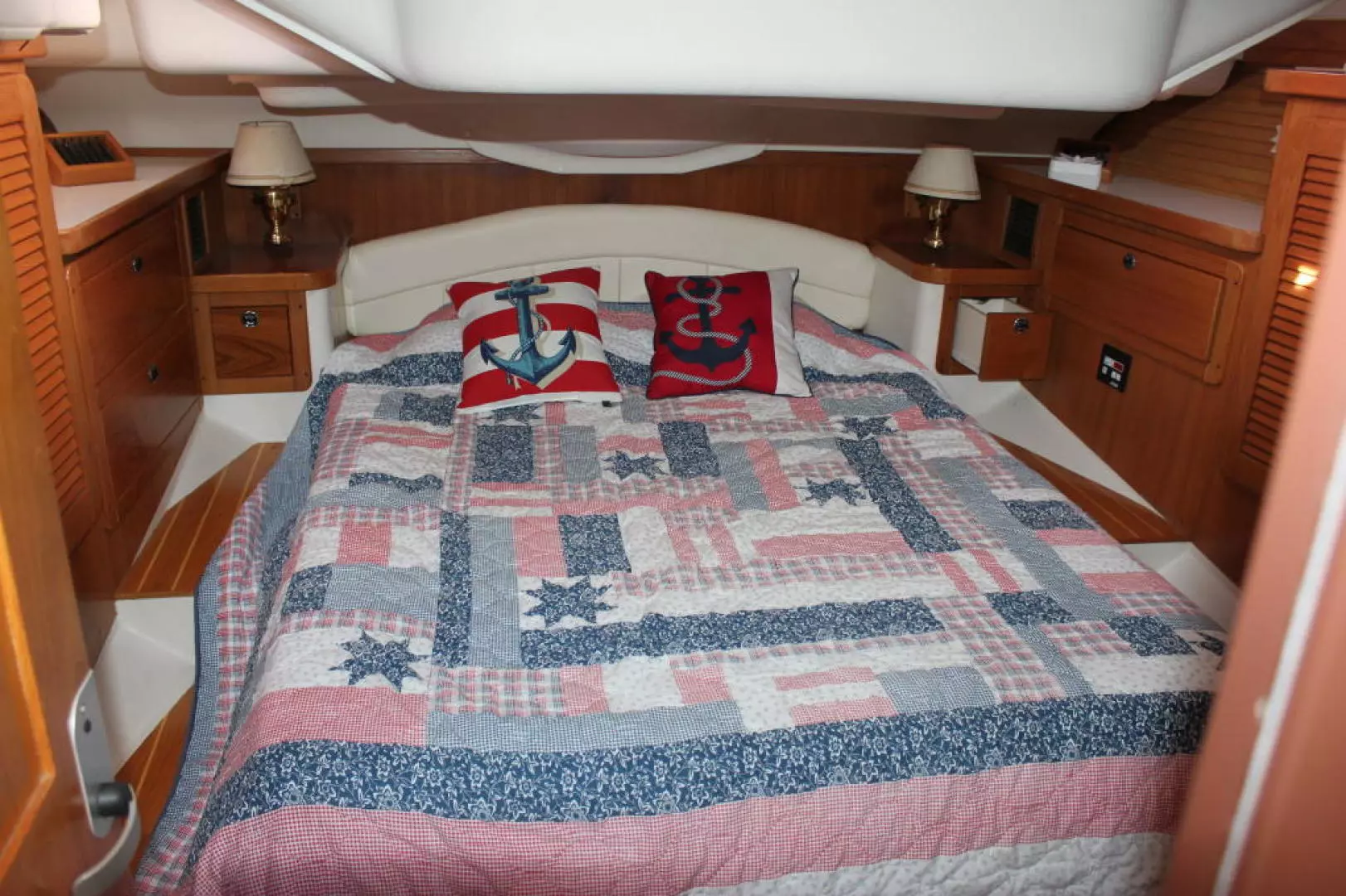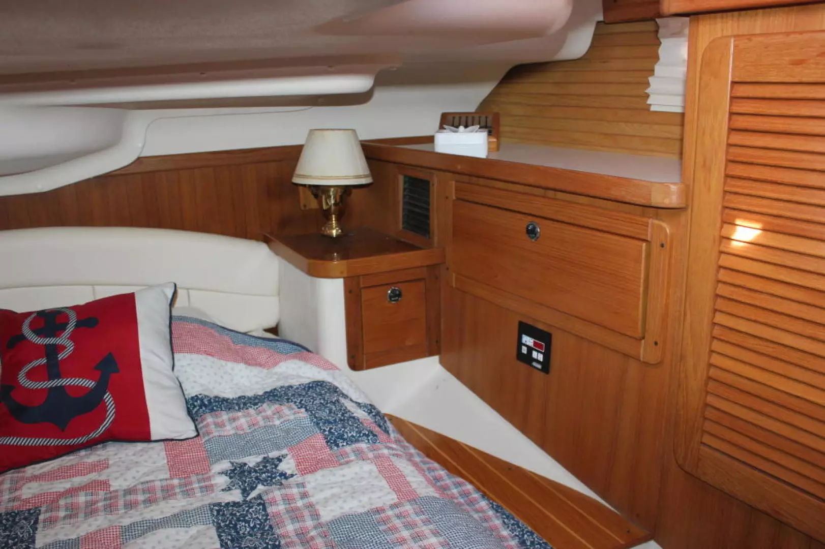 - Inner spring mattresses on fore and aft berths with custom fitted sheets