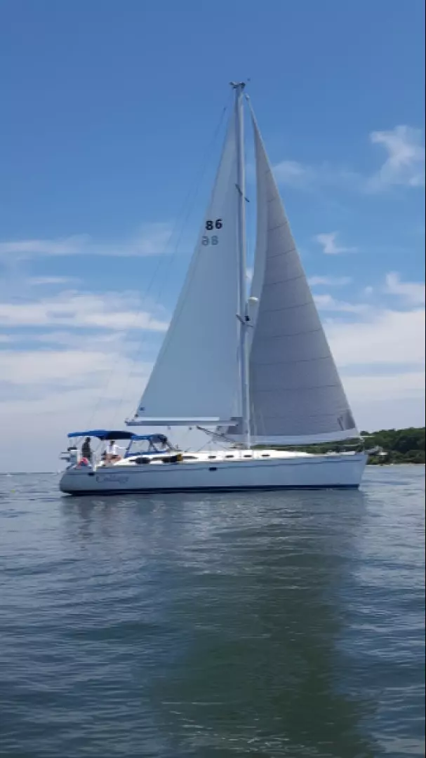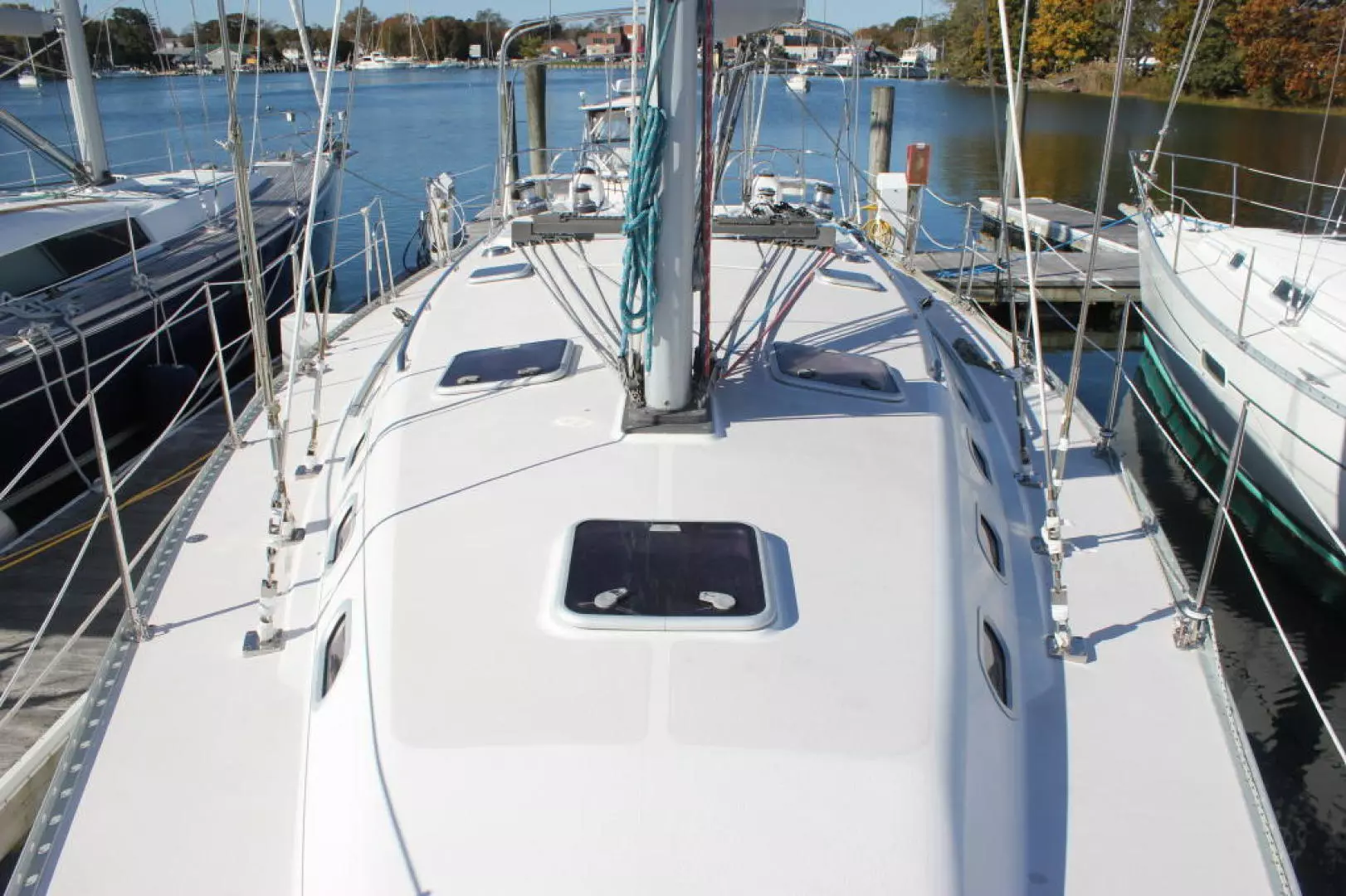 Collage is the desirable 2-cabin layout with a spacious salon and a fully equipped galley midship to port with the Nav Station opposite. Entrance to the aft head is from the owner’s stateroom or from the main salon. The forward cabin has a double berth, hanging locker and storage with the second head forward in the forepeak. Both heads have stall showers. The salon has a U-shaped dinette with seating opposite. This boat is not a “typical” Catalina. She is designed for offshore sailing; many owners are currently living aboard and ranging the world with theirs. Check out the Full Specs and call for an appointment for a private viewing. She is located in Greenport, NY.