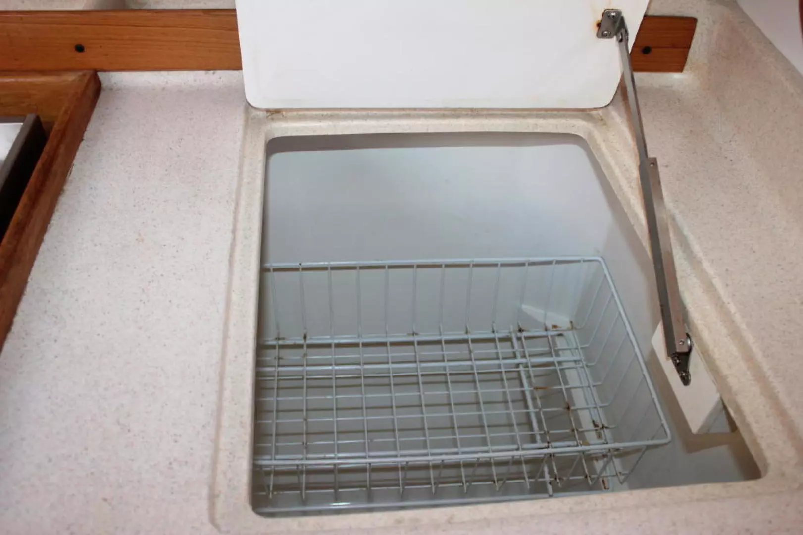 - Refrigeration system, DC powered with divided refrigerator-freezer compartments.