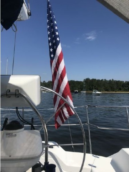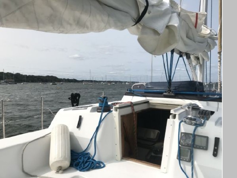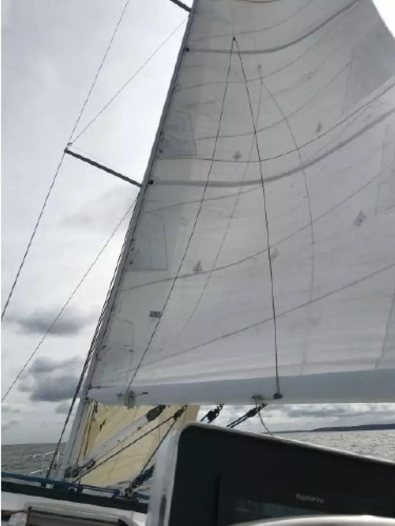 - Main: Two Fully battened Dacron mainsail with Sunbrella Mainsail Cover