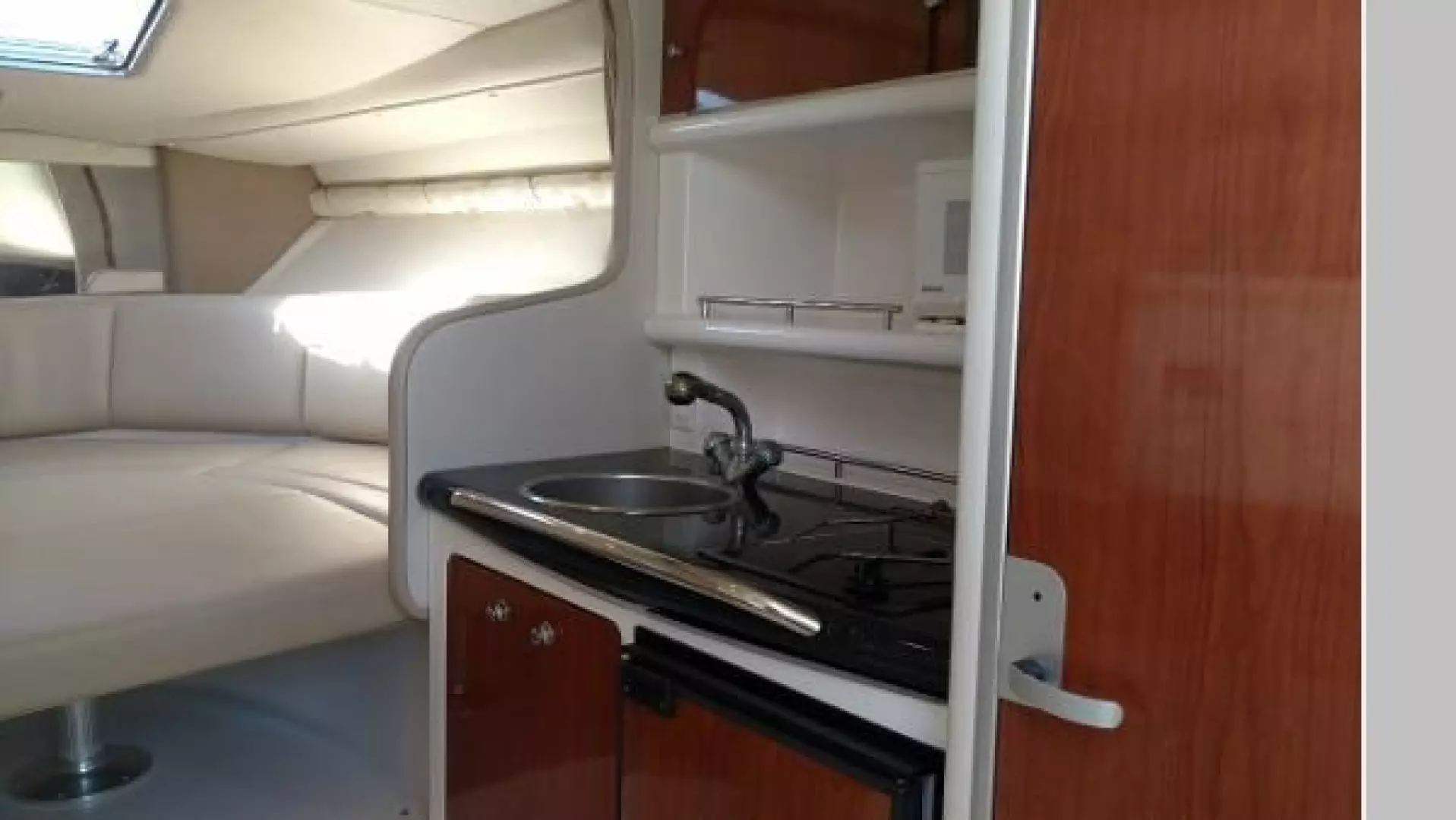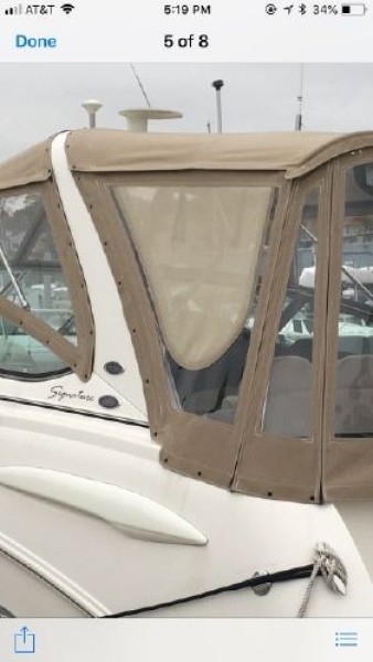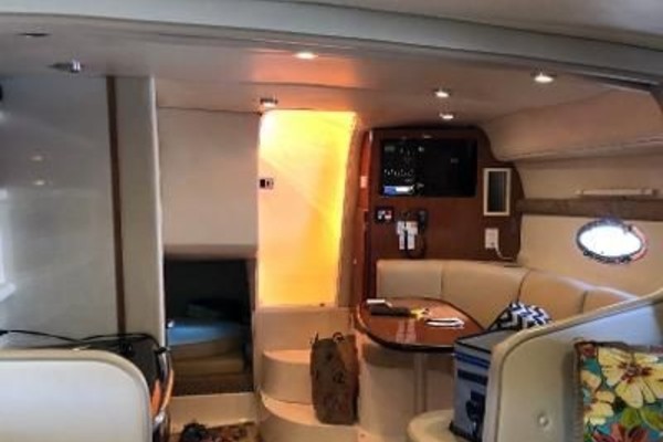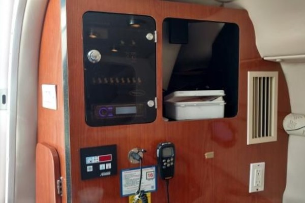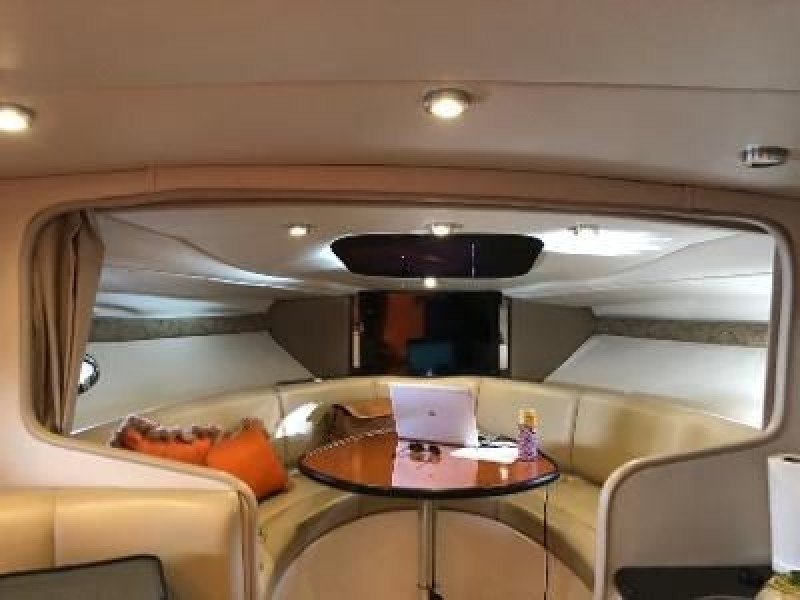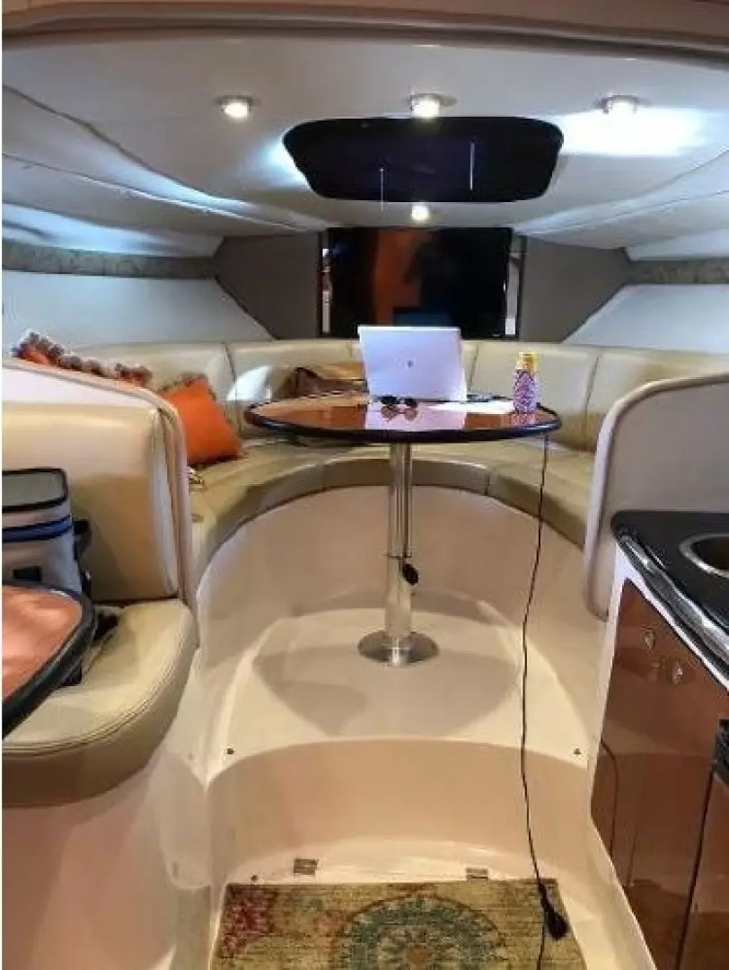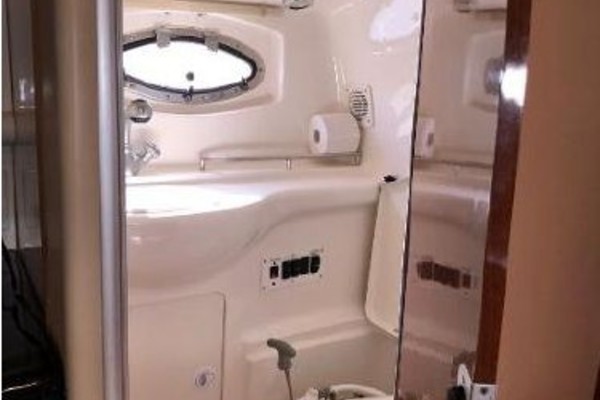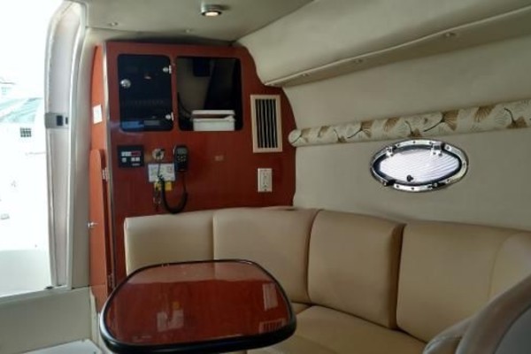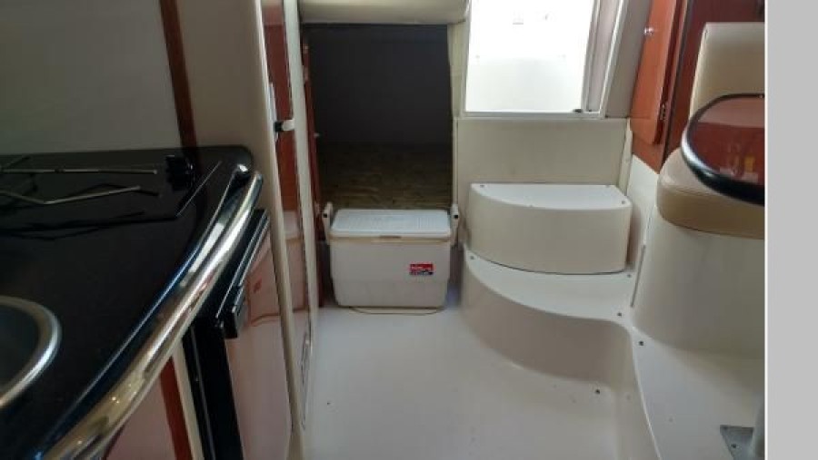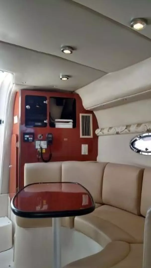 She has a fully equipped galley, is bright below and has ample headroom. Additional features includes air conditioning, a built-in entertainment center, a transom storage locker, spacious storage locker under the portside passenger seat, a walk-through windshield, and an extended swim platform with shower. Please see the features section for additional details.