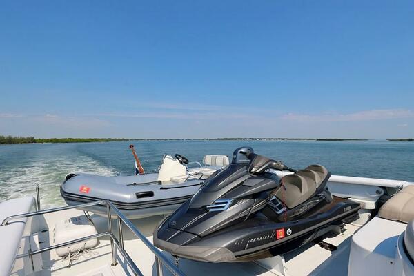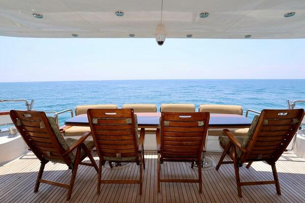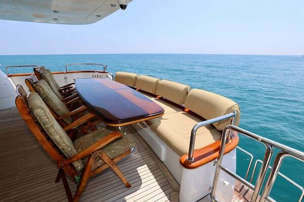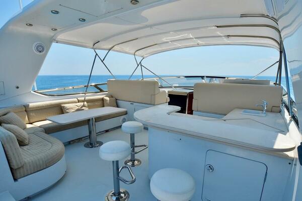 Perfect for both navigation and leisure, the flybridge is accessible from the pilothouse or aft deck. This expansive area offers: