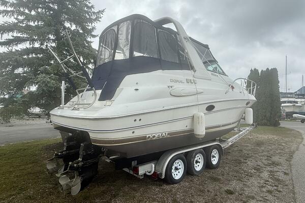 New listing September 2025! A clean two-owner Doral 300 SE with only 506 hours. This vessel has had the full canvas enclosure recently replaced and comes paired with a tri-axle aluminum trailer. The cockpit offers exceptionally large seating for a 30ft boat, with sleeping accommodations for four down below. You won't find many boats in this size range with a generator and AC/Heat, making this a great package.
