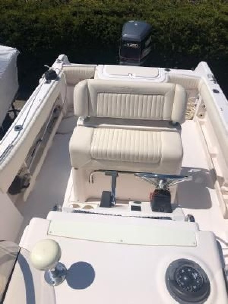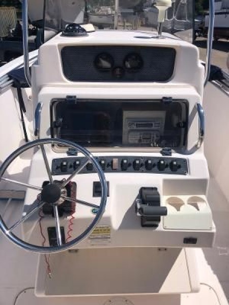 Just Listed and very clean with professional maintenance and 437 hours on her fuel injected 250 hp 2 stroke Yamaha. This is a very dry riding boat that is extremely economical for offshore trips and versatile enough to keep the family happy with water sports. Yamaha engine gauges, Gps/Chartplotter, Depth, VHF, V berth and Porta Potti. Everything on boat works as it should.