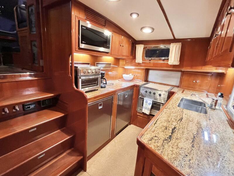 - Below deck, the 49 HX offers a bright, inviting cabin layout featuring: