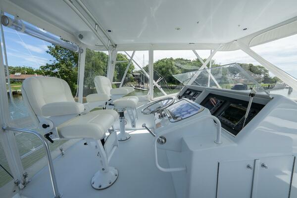 FORTITUDE is a 2001 Hatteras 50 Convertible that has been exceptionally well maintained and proactively serviced. Two owner boat purchased directly from Hatteras with just over 100 hours at that time. She has the preferred CAT 3412 engines generating 1400hp each and providing outstanding performance. She has primarily been used as a seasonal family cruiser and very lightly fished. FORTITUDE lives behind the owner’s home in Greenport, NY and she is always in show worth condition.