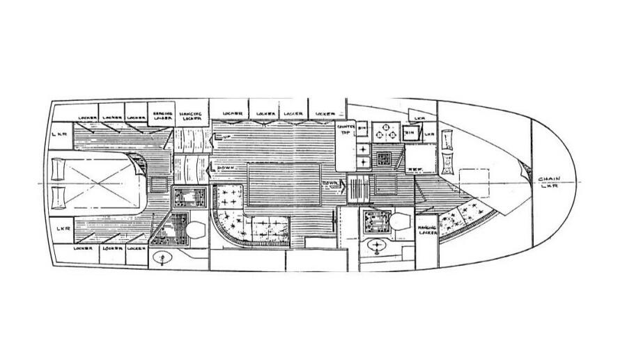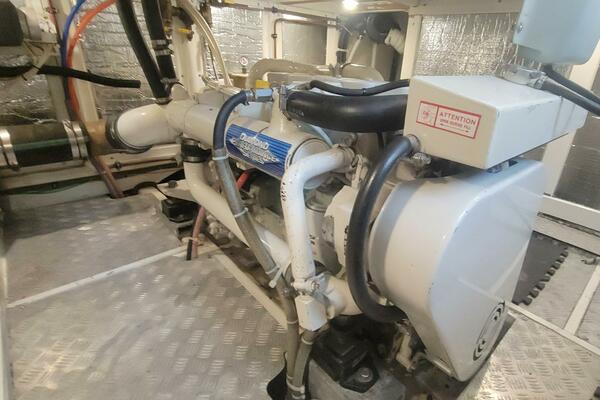 The engine room accessed through a door under the galley stairs or via hatch doors in the salon deck. There is ample space to move around in the engine room, making maintenance almost enjoyable!