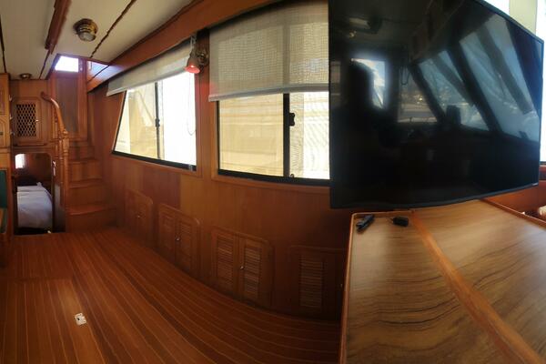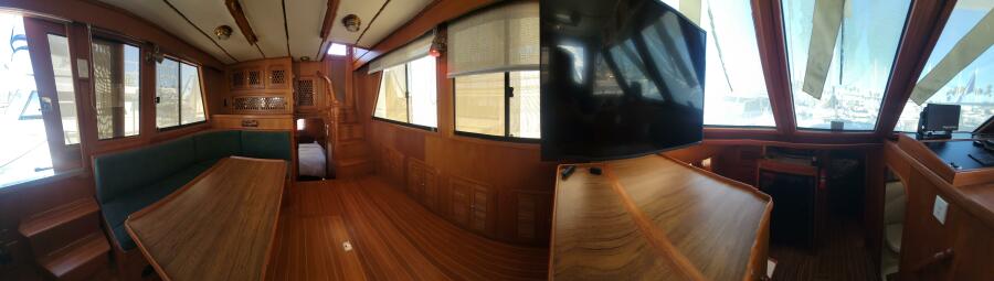 Bright Salon: Teak joinery, panoramic visibility, and >6’5” headroom throughout.