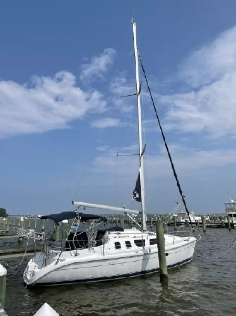 The Hunter 320 was designed to be a comfortable, safe, easy to sail, family cruiser. She has many features found in larger vessels and boasts two private staterooms including a full aft cabin with a nice, full sized berth. This design came out in 2000 and was one of Hunter's most popular designs, well suited for family cruising but easily single-handed.