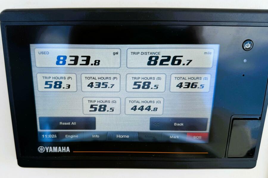 Repowered in 2019 with triple Yamaha 300 HP 4-strokes, she offers the ideal mix of speed, reliability, and fuel economy. All engines are dealer-maintained with service completed June 2025 and current hours of 436 / 436 / 444.