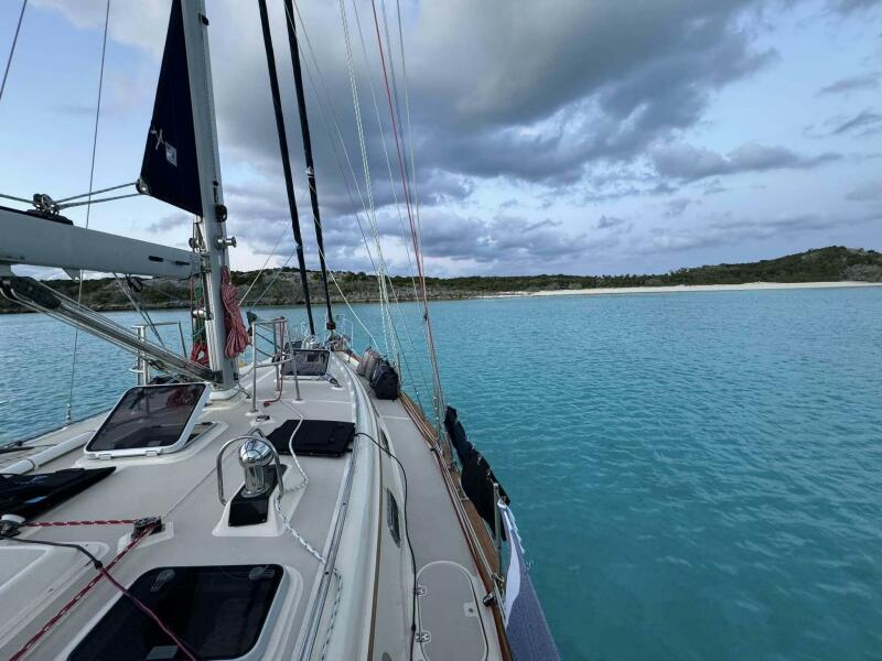 A true cutter rig for versatility and balance under sail — the Island Packet 420 is renowned for her steady performance and forgiving handling.