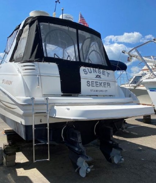 SUNSET SEEKER is a 2001 Larson 330 Cabrio mid-cabin cruiser with one-owner and lots of extras. Her MerCruiser 5.7EFI engines were professionally replaced in 2017 and she has had many upgrades. Her notched "Duo Delta Conic" hull gets up on plane quickly and makes her more fuel efficient than a standard hull. Clean interior, new bottom paint and motivated seller mean she is ready to go!