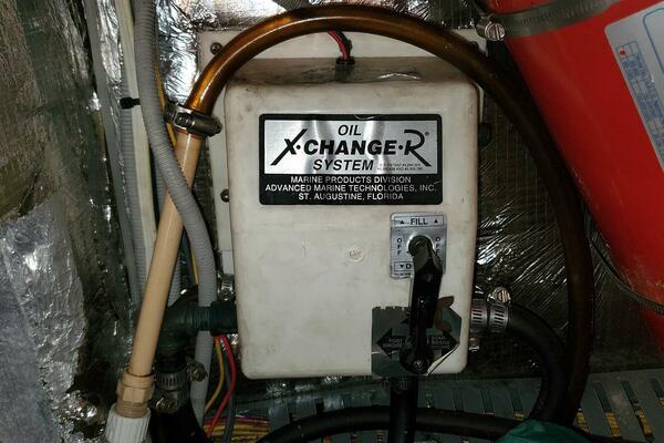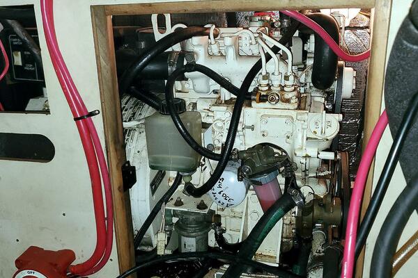 The engine room is easily accessed through three hatches in the salon sole or by easily lifting the gas strut assisted galley steps.