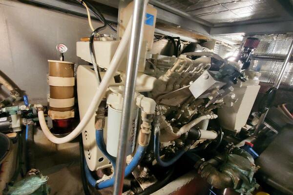 Copacetic Too is a 2001 Mainship 430 Aft Cabin Trawler featuring a two-stateroom, two-head layout and presented in exceptional condition. She has been meticulously maintained and thoughtfully upgraded throughout her life. Powered by twin Cummins 330 HP engines and supported by a Kohler 8 kW generator, she also includes an oil change system, dripless shaft seals, a Walker Bay inflatable tender, and a Sea Wise tender davit system.