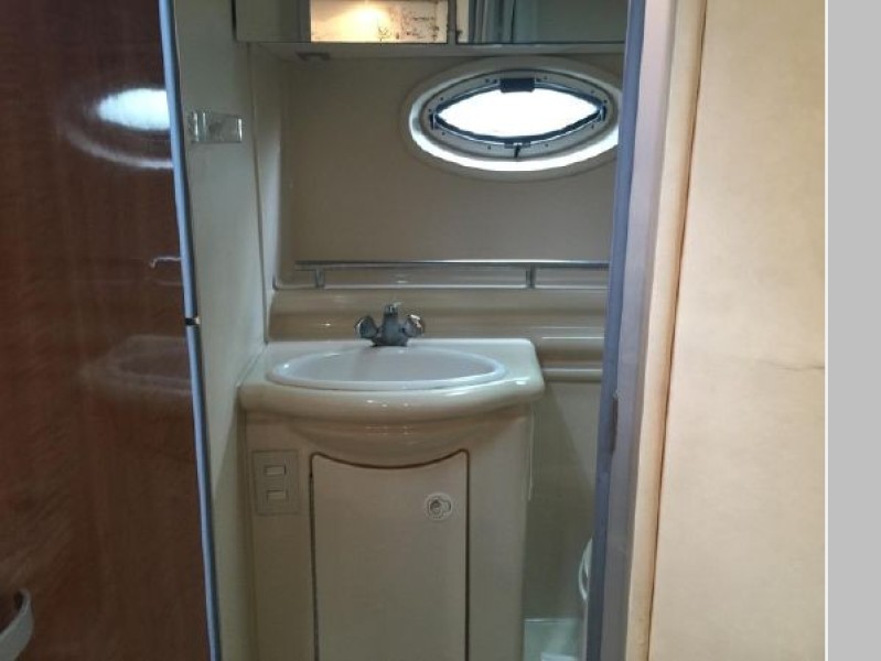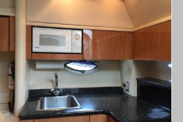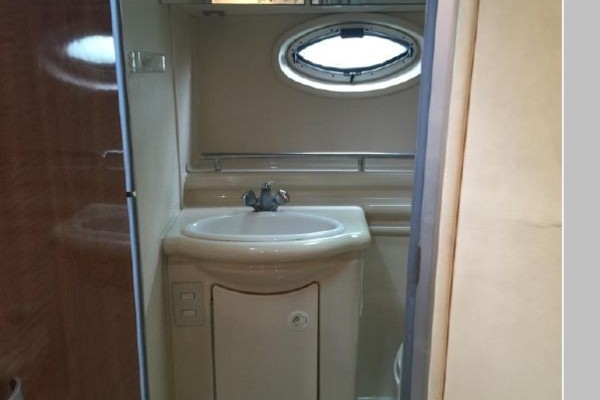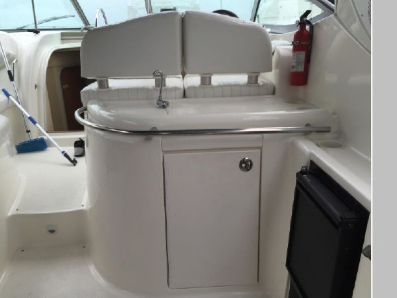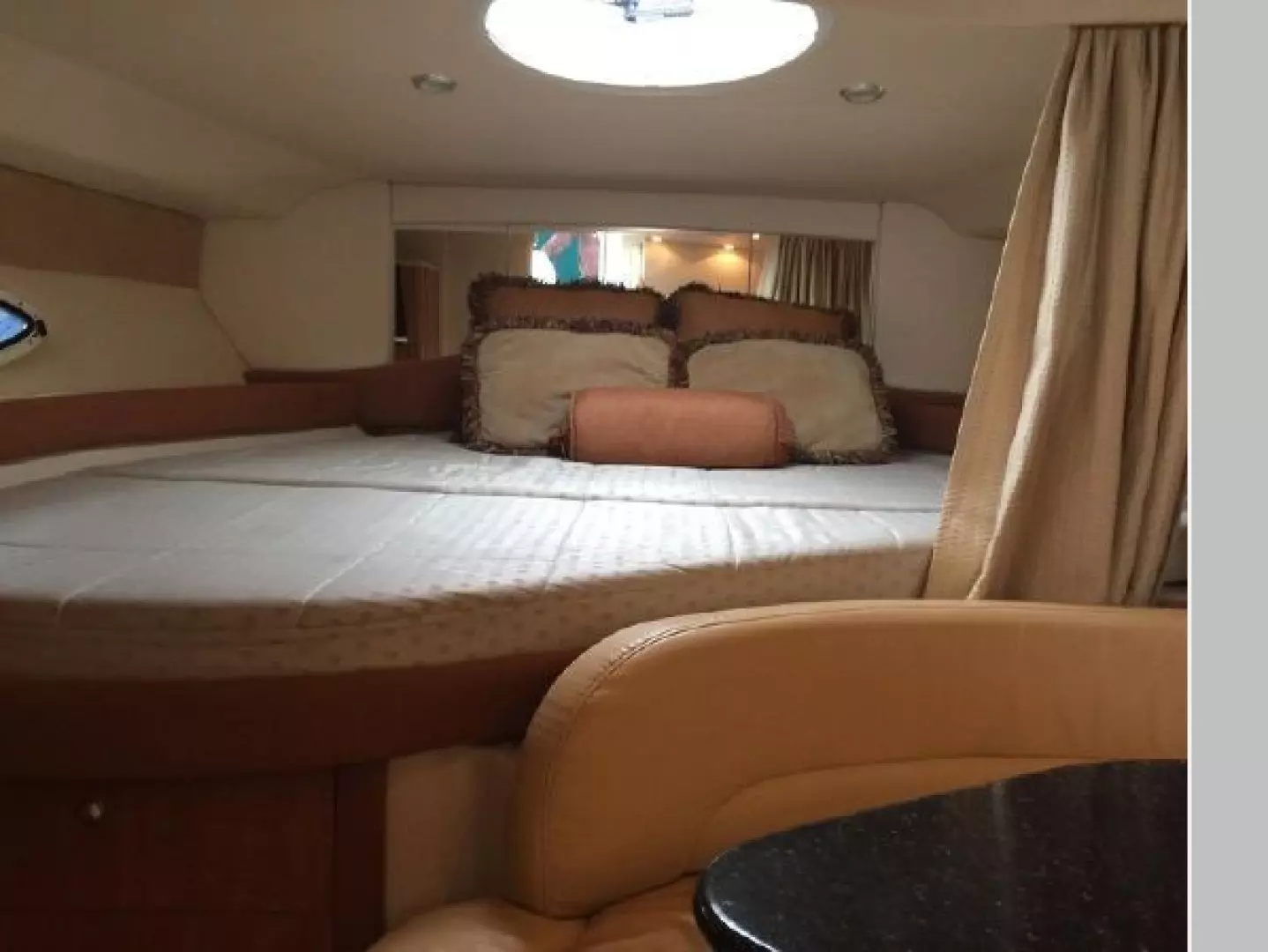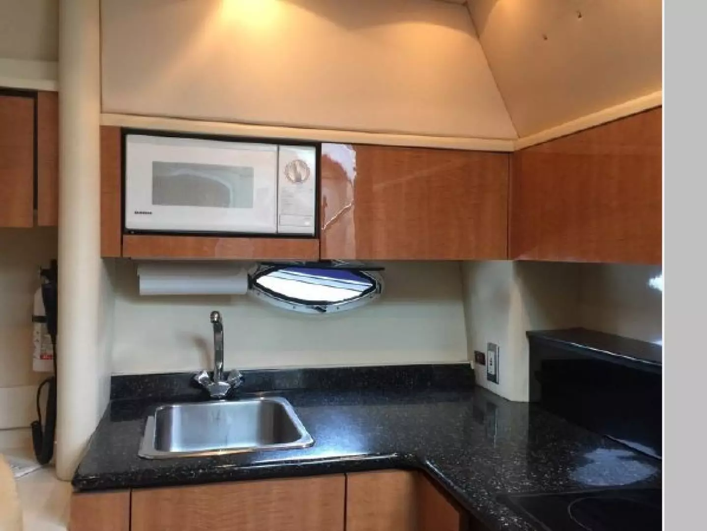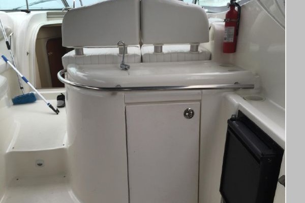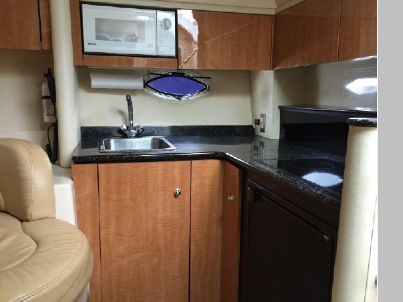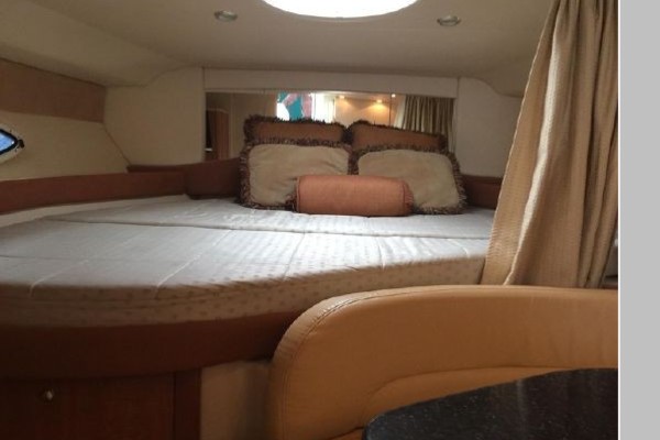 The Maxum 3500 SCR is infused with the panache of a refined luxury yacht - boasting the latest in design and comfort - along with all the punch one would expect from a cutting edge, high-performance sport craft that demands to be driven. Even from a distance, the distinctive Maxum silhouette and reversed radar arch signal that this one?s got it all: poise, performance and sophistication, all wrapped in a sleek and sensuous package. The broad transom platform features storage, a retractable swim platform, and a convenient fresh water shower for dives or swims in exotic waters. The helm is impressive with its advanced instrumentation cluster, and the openness of the aft cockpit area and the seating accommodations hold the promise of many nights of entertaining to come, out under a shimmering canopy of stars. Once below, the cabin will embrace passengers with luxury. The gourmet galley, with microwave, refrigerator and stovetop, plus the generous forward and aft berths provide accommodation for six. The full fiberglass head features a shower, sink and skylight.