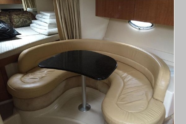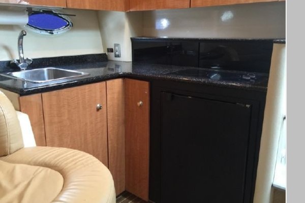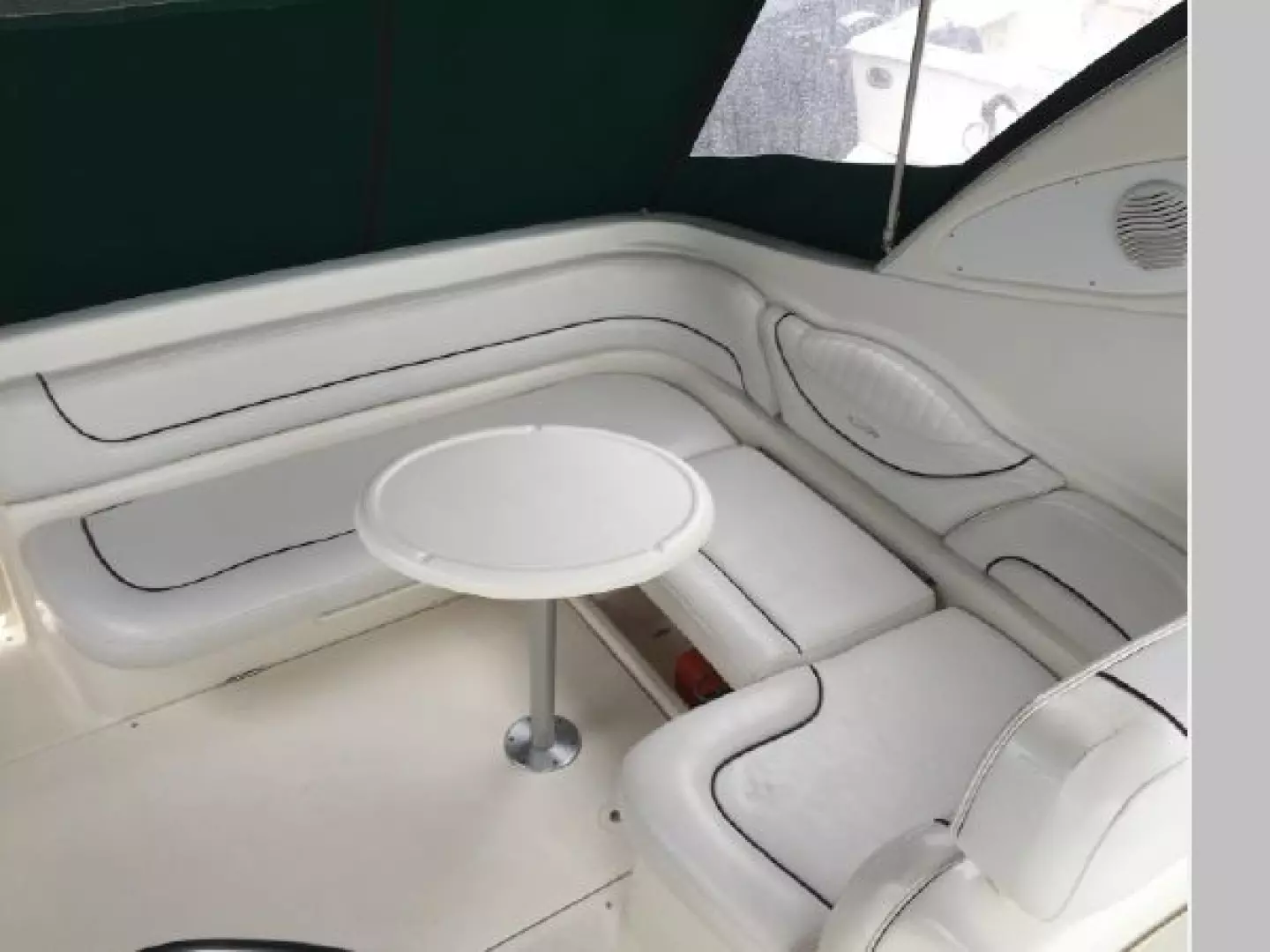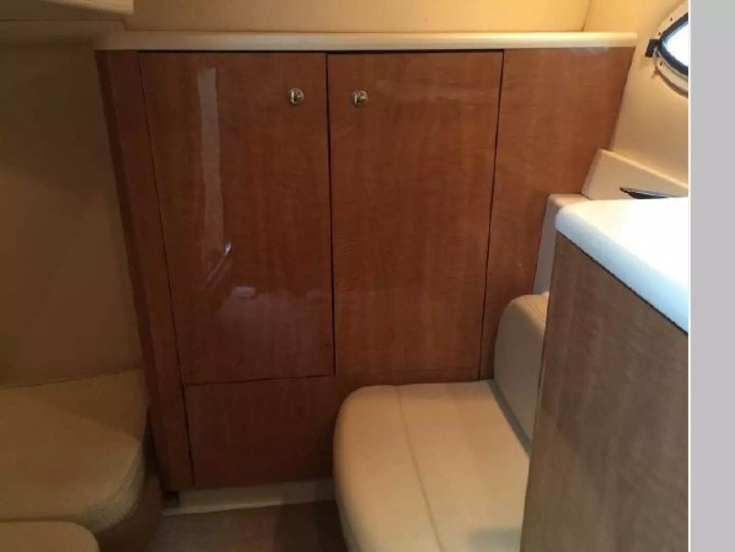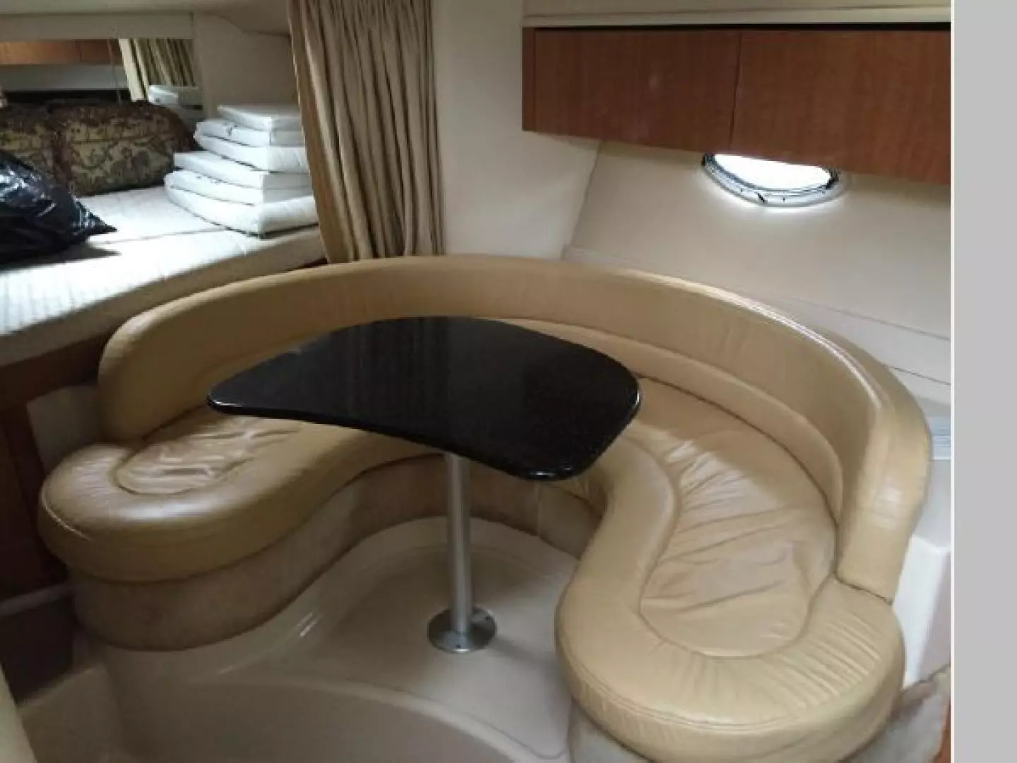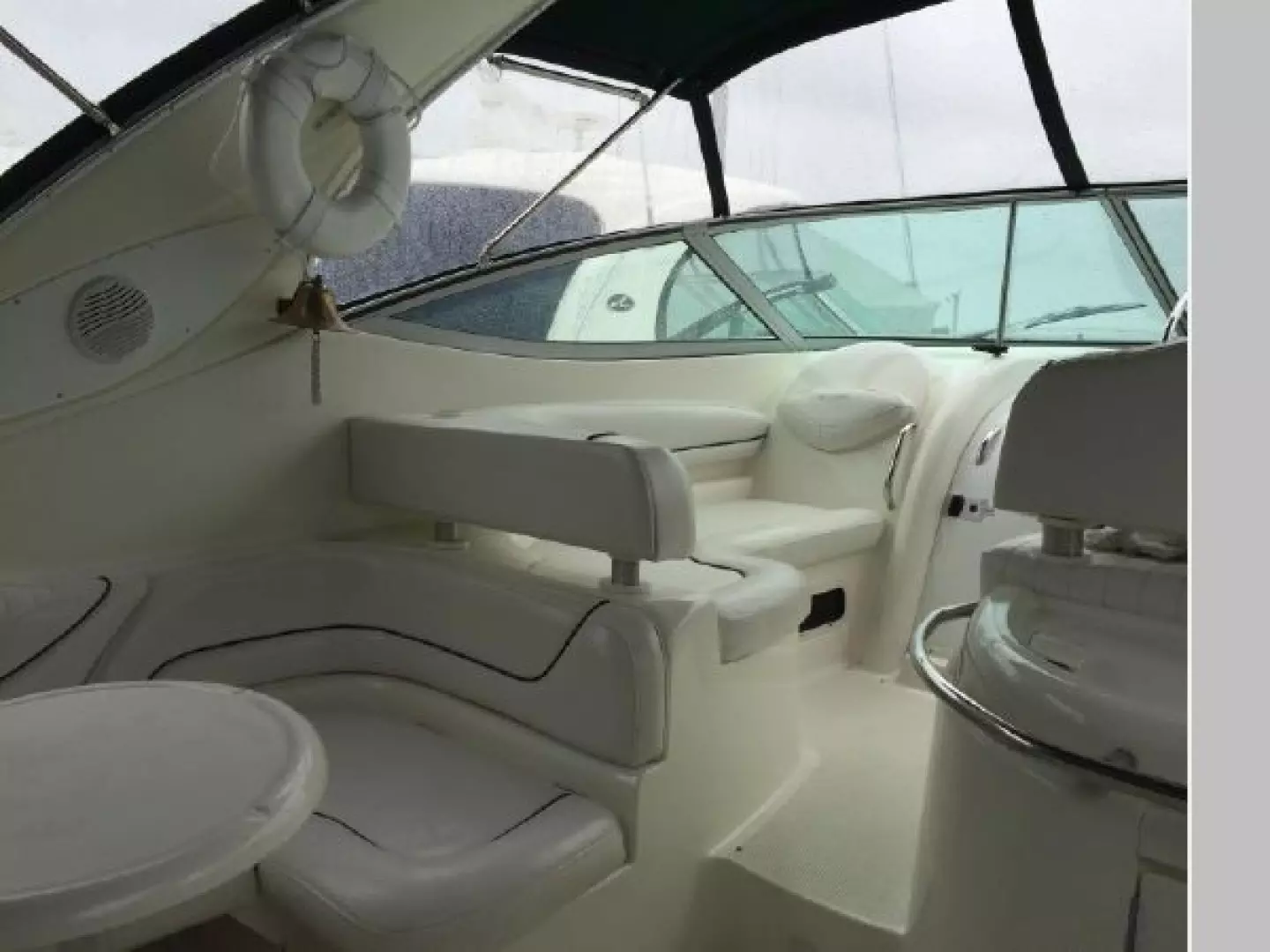 The Maxum 3500 SCR is infused with the panache of a refined luxury yacht - boasting the latest in design and comfort - along with all the punch one would expect from a cutting edge, high-performance sport craft that demands to be driven. Even from a distance, the distinctive Maxum silhouette and reversed radar arch signal that this one?s got it all: poise, performance and sophistication, all wrapped in a sleek and sensuous package. The broad transom platform features storage, a retractable swim platform, and a convenient fresh water shower for dives or swims in exotic waters. The helm is impressive with its advanced instrumentation cluster, and the openness of the aft cockpit area and the seating accommodations hold the promise of many nights of entertaining to come, out under a shimmering canopy of stars. Once below, the cabin will embrace passengers with luxury. The gourmet galley, with microwave, refrigerator and stovetop, plus the generous forward and aft berths provide accommodation for six. The full fiberglass head features a shower, sink and skylight.